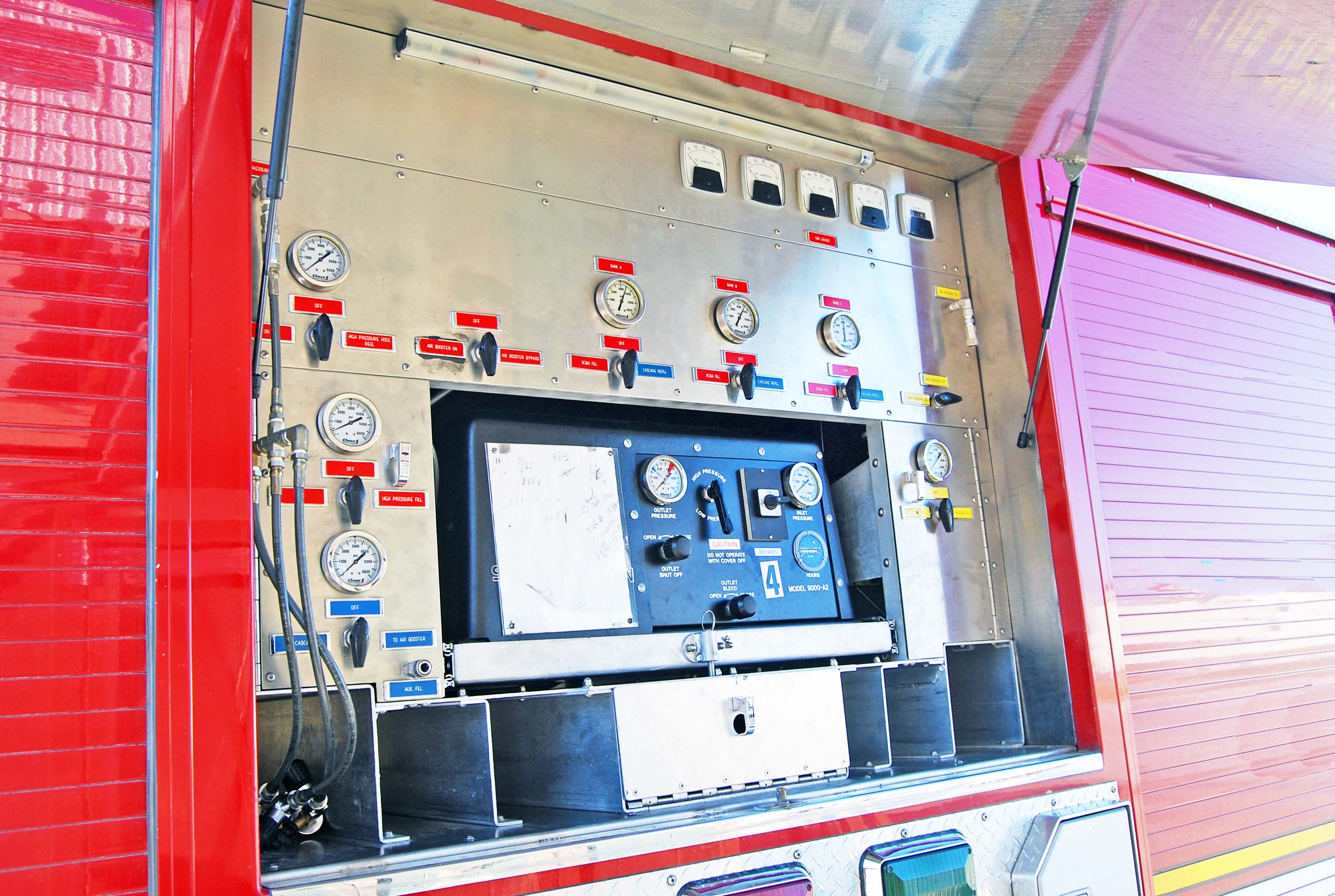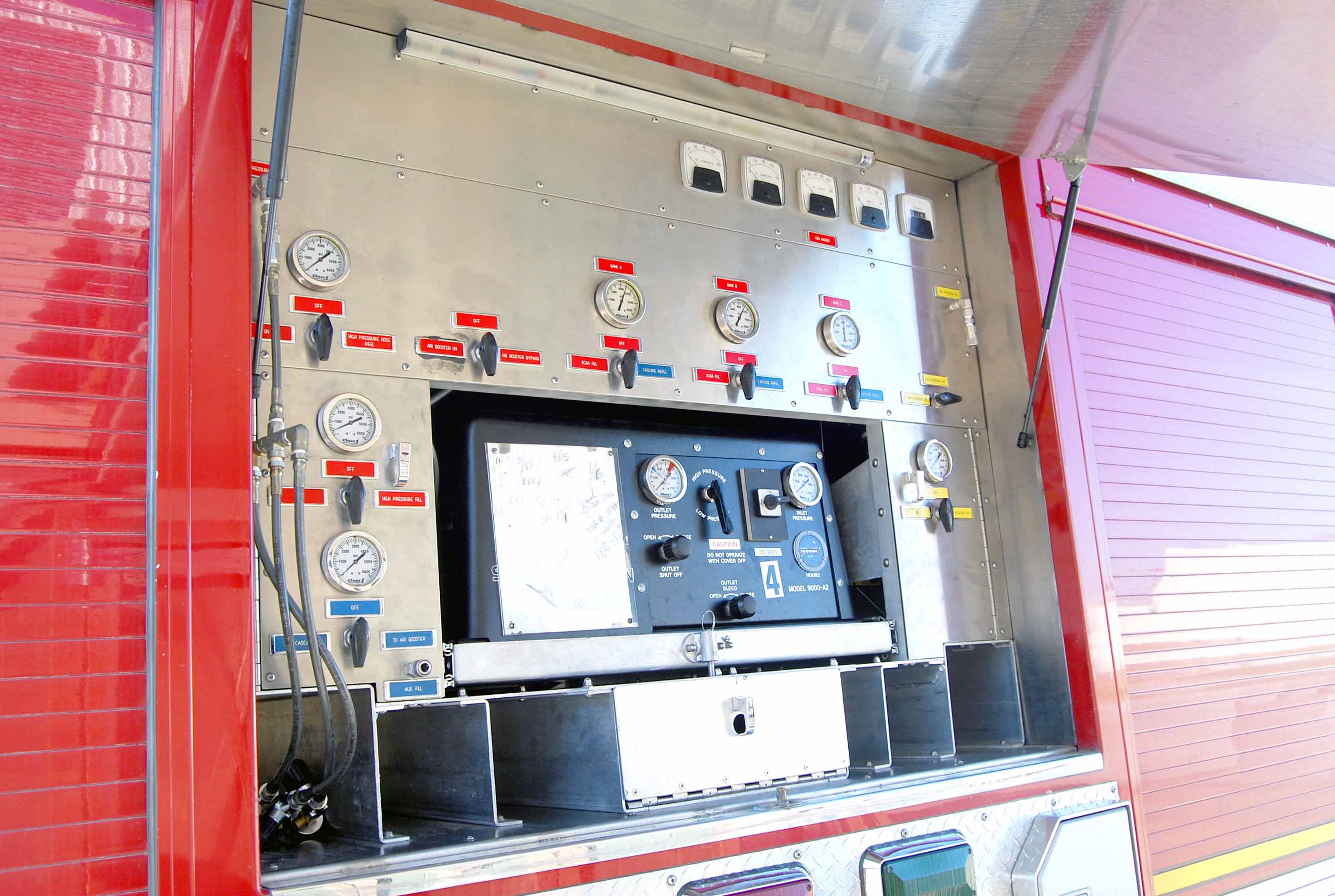 Breathing Air resupply system: Twelve (12) DOT H tanks (4500 psi) Air fill station control panel (used for filling storage or SCBA bottles) One (1) Serra Precision air booster Model 9000