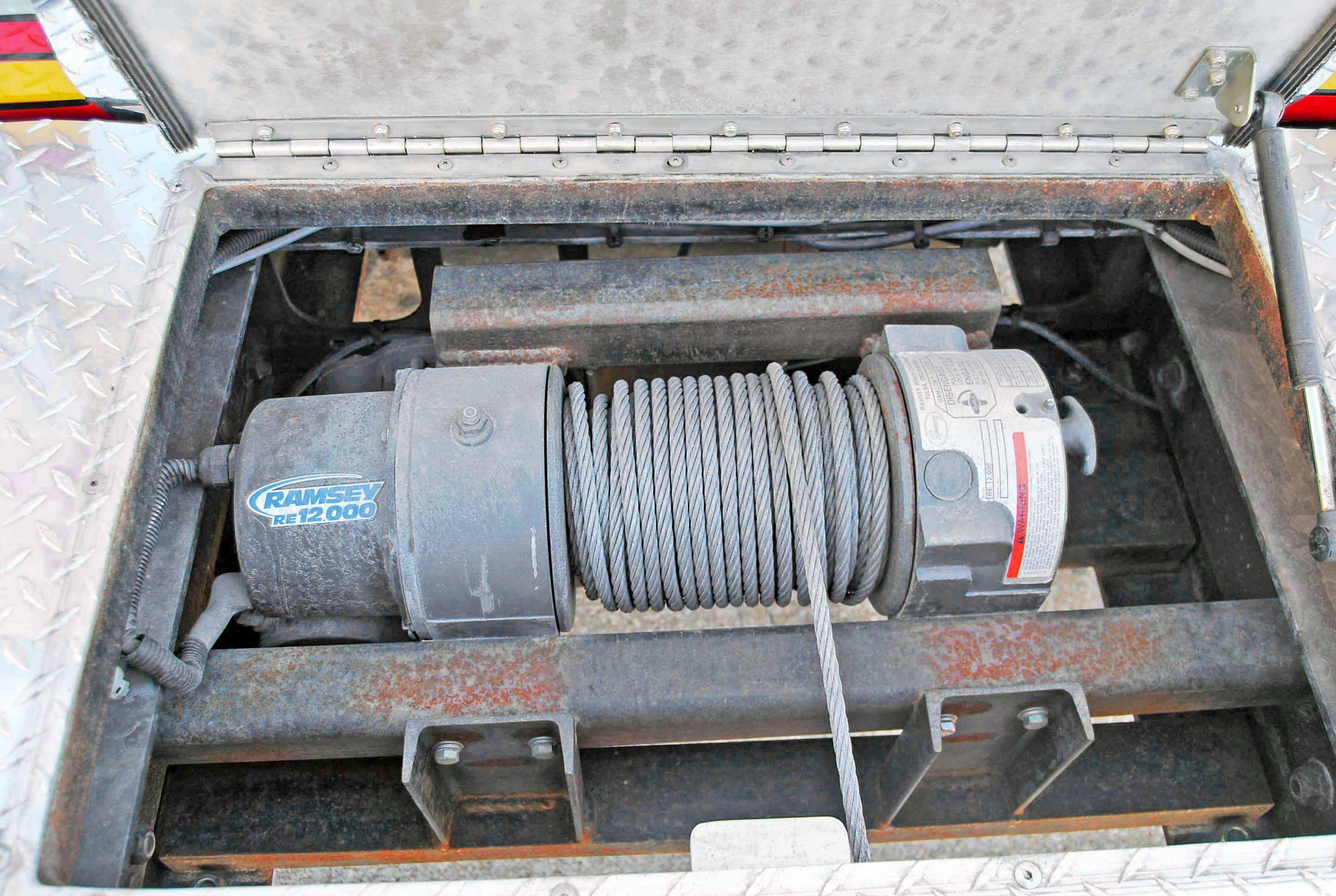 Two 24” air horns foot pedal operated on both drivers and officer’s side FireCom intercom system four positions. Ramsey 12,000 lb electric winch with 125’ of 3/8” cable.