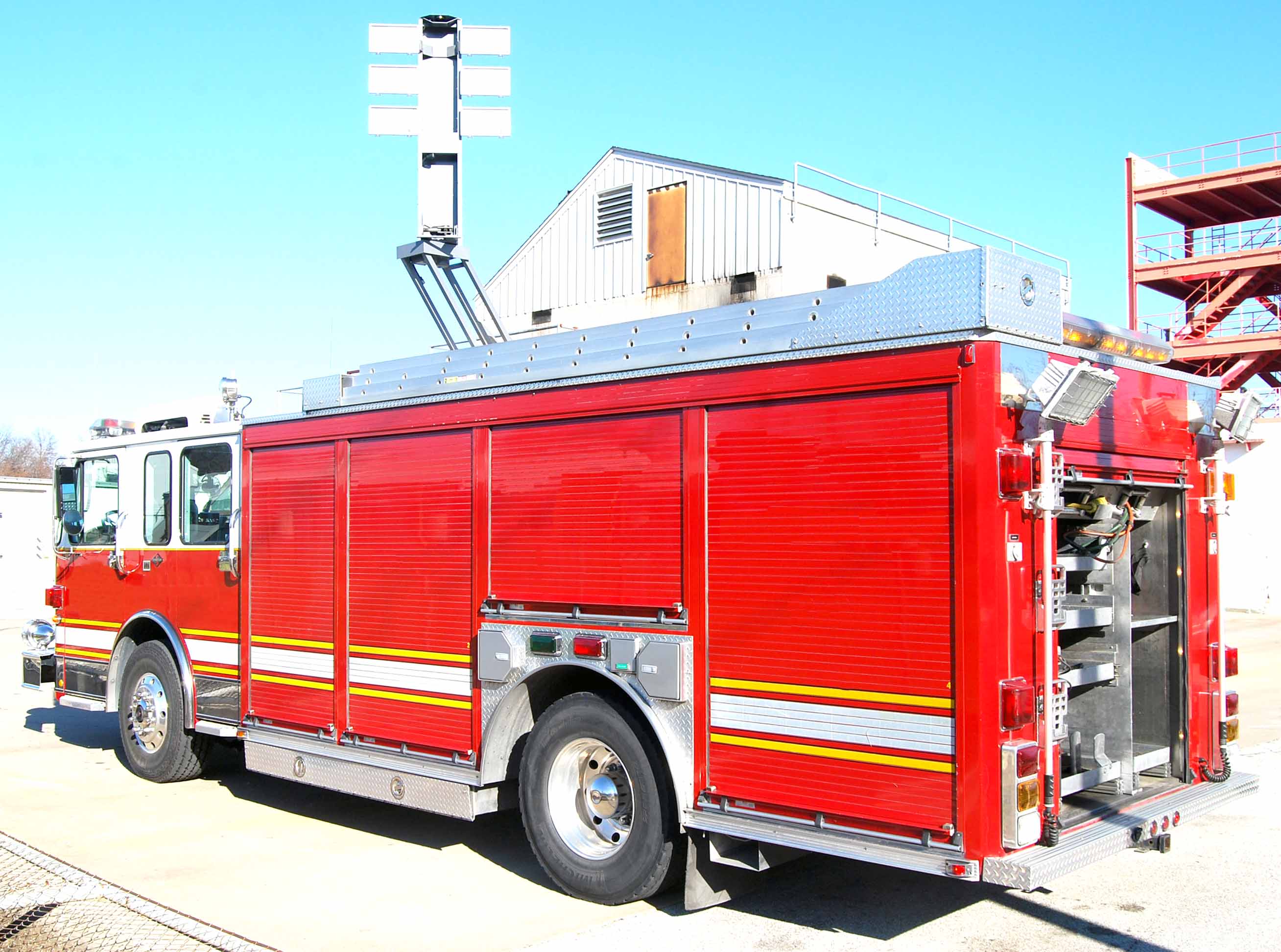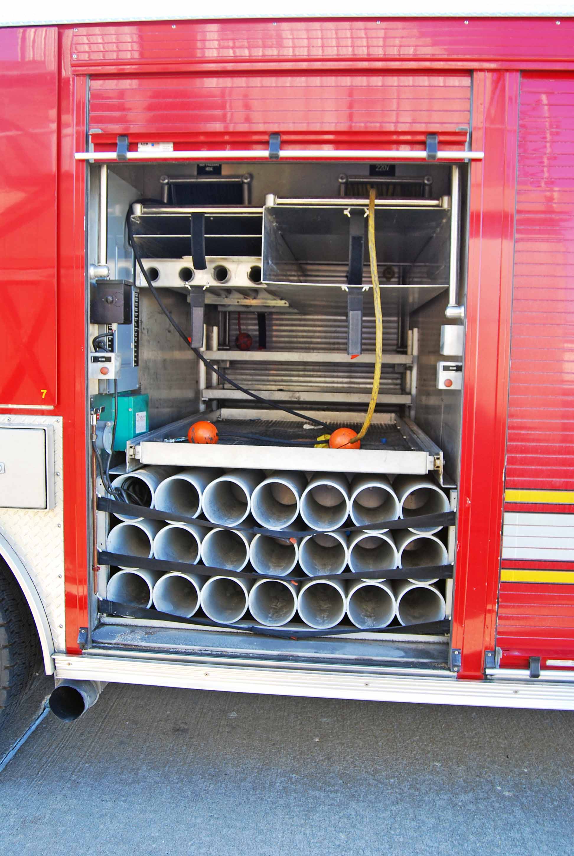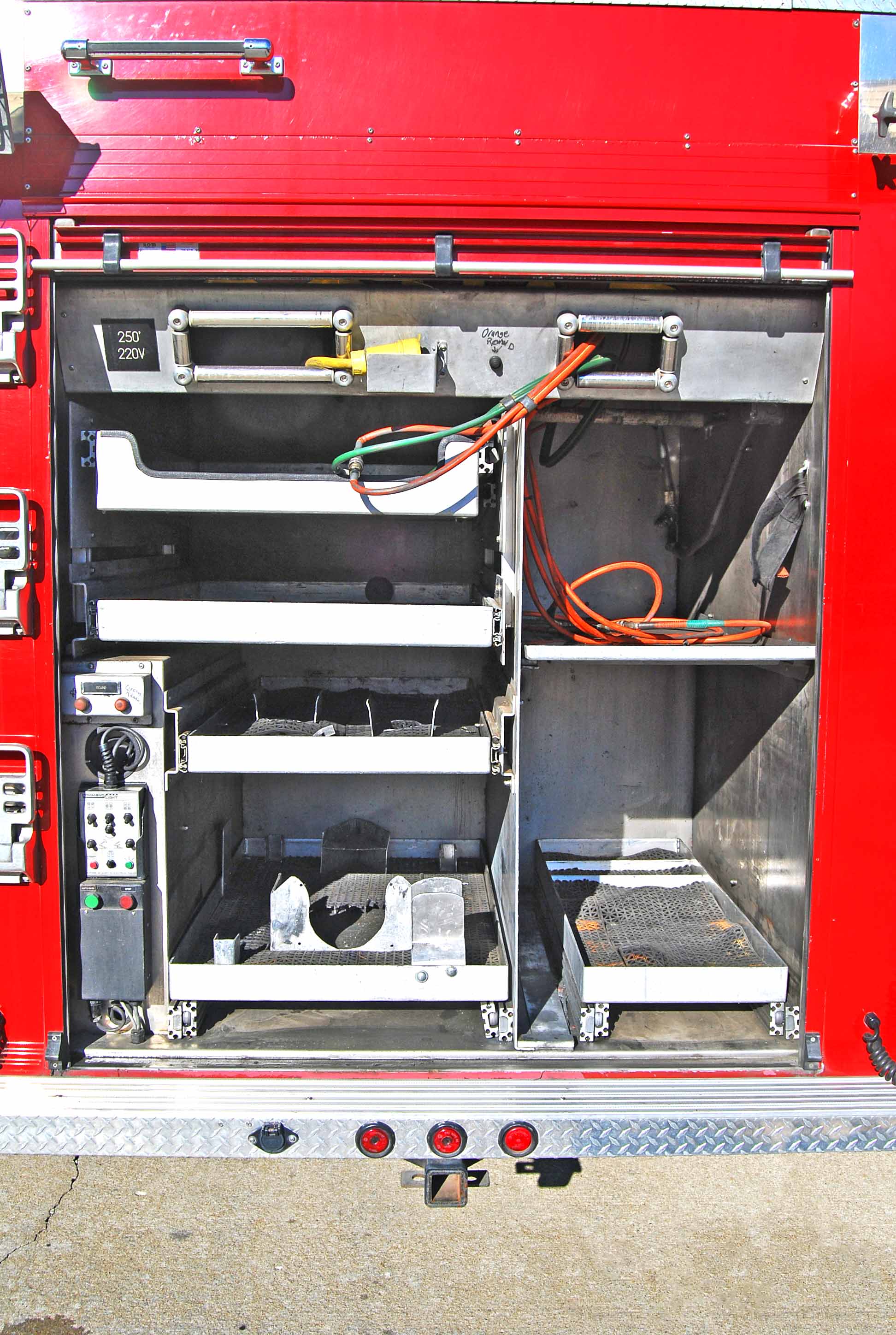 Three (3) Hannay electric rewind cord reels with 250’ of 10/4 SOW cable One (1) Hannay electric rewind, high pressure 100’ dual hydraulic hose for Hurst extrication tools. One (1) Hannay electric rewind, high pressure air reel with 300’ of 5000 psi breathing air line.