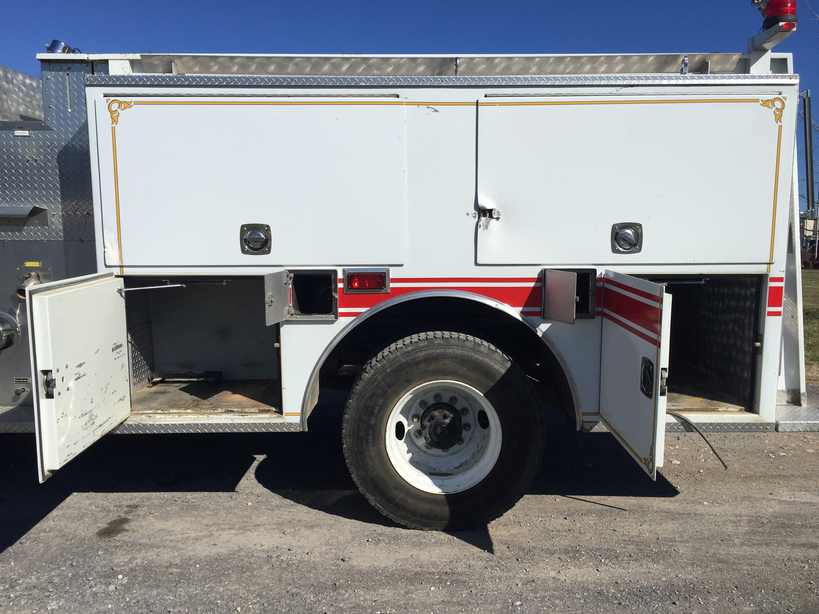 • With under 25,000 miles, this used fire truck has been very well taken care of over its life. There should be plenty of life left to respond to emergency calls in your own fire department with this piece of emergency equipment.