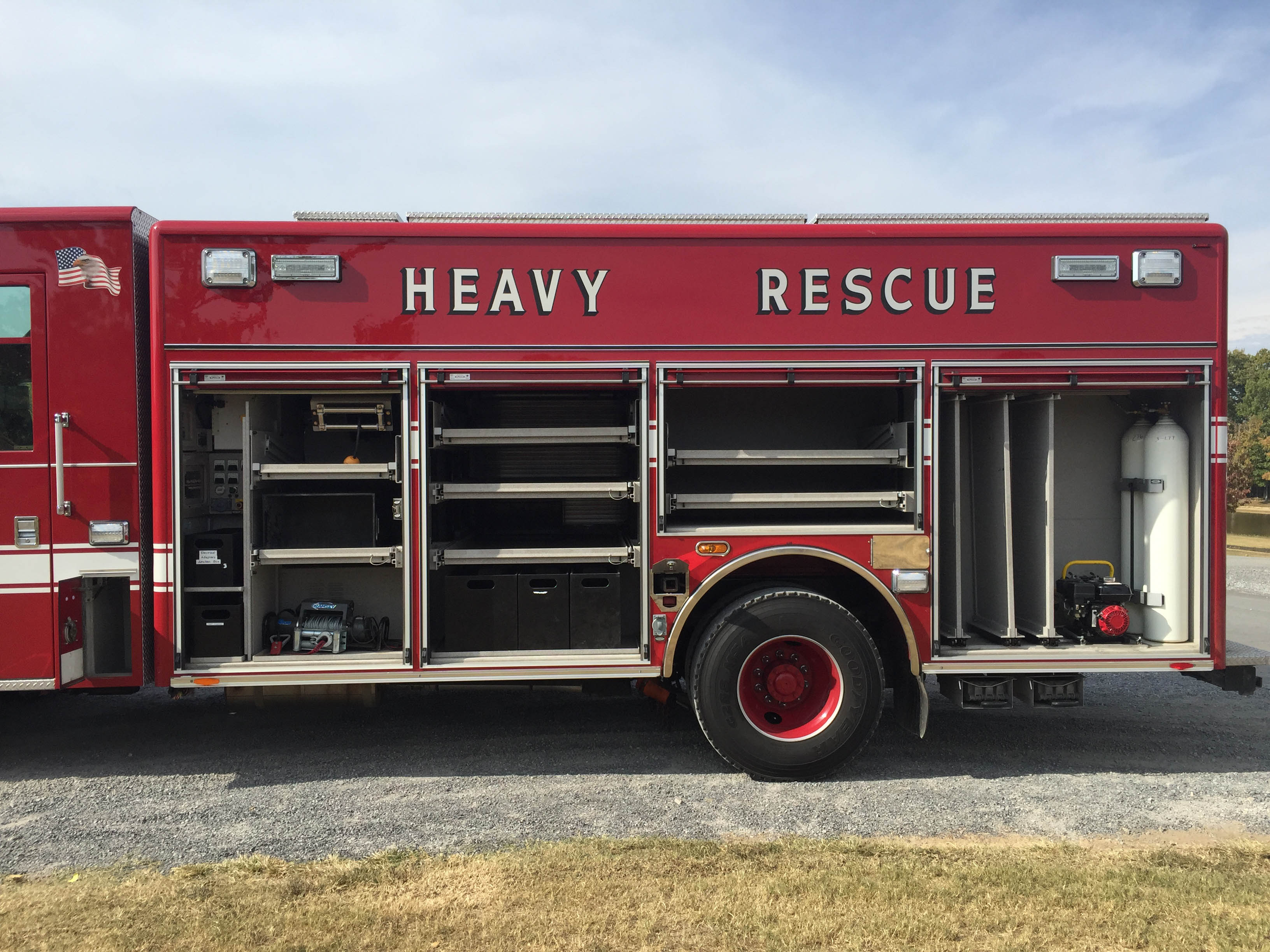 The light tower on this vehicle will provide excellent scene lighting on your response. Whether lighting a wreck scene, or making sure your fire fighters have the light needed to prepare for work, this truck can provide that.