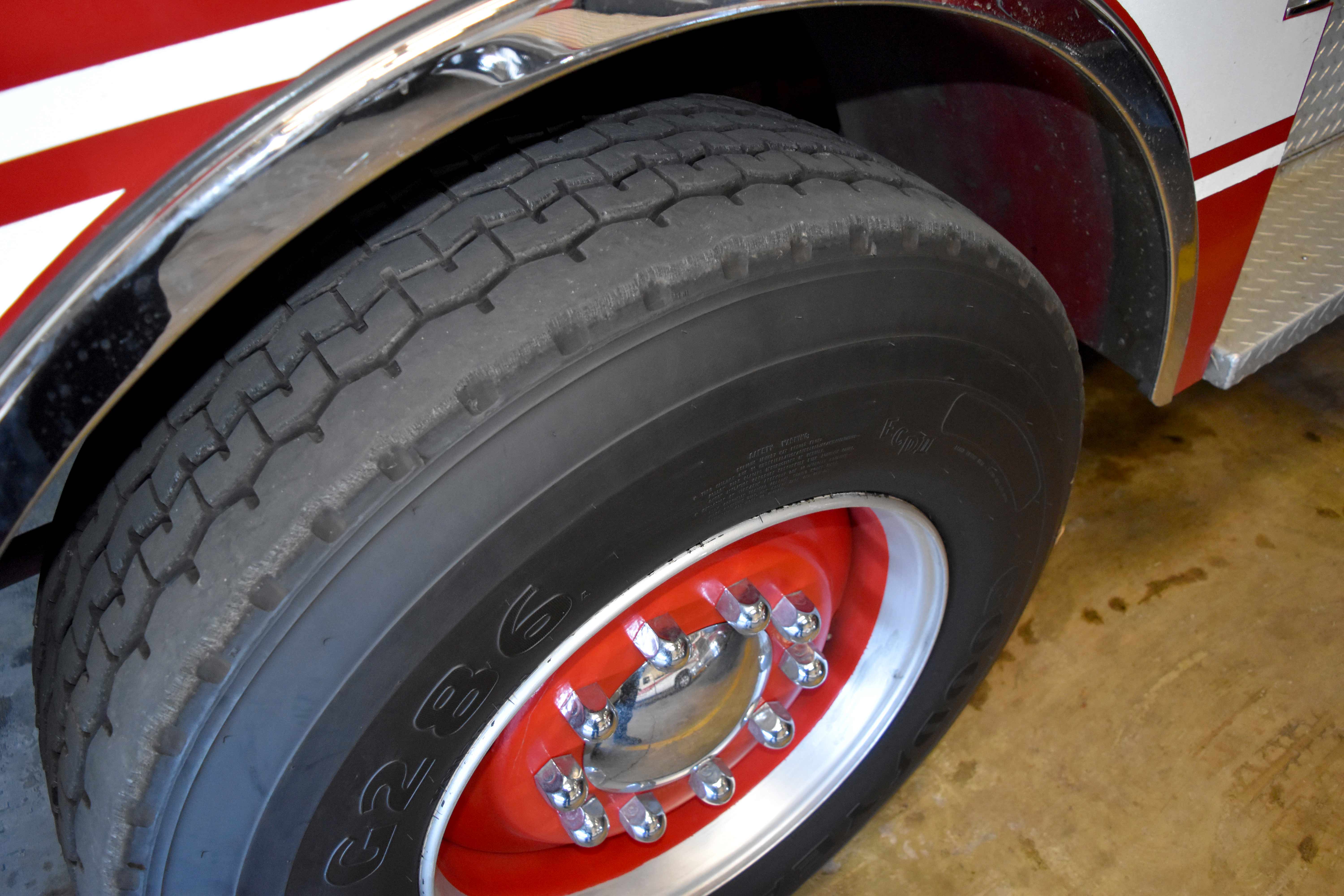 Front tires are 385/65R 22.5 on steel wheels Rear tires are 12R 22.5 on steel wheels
