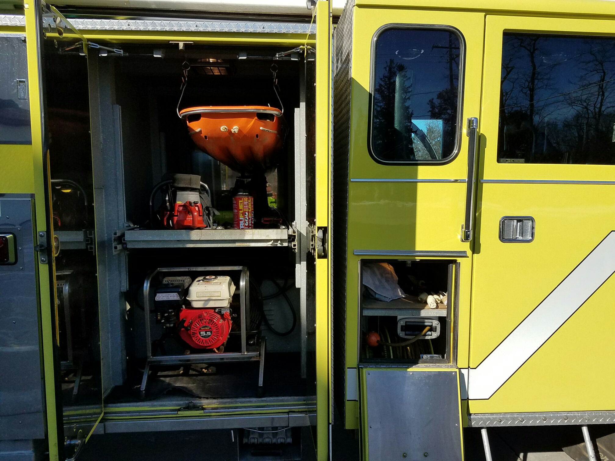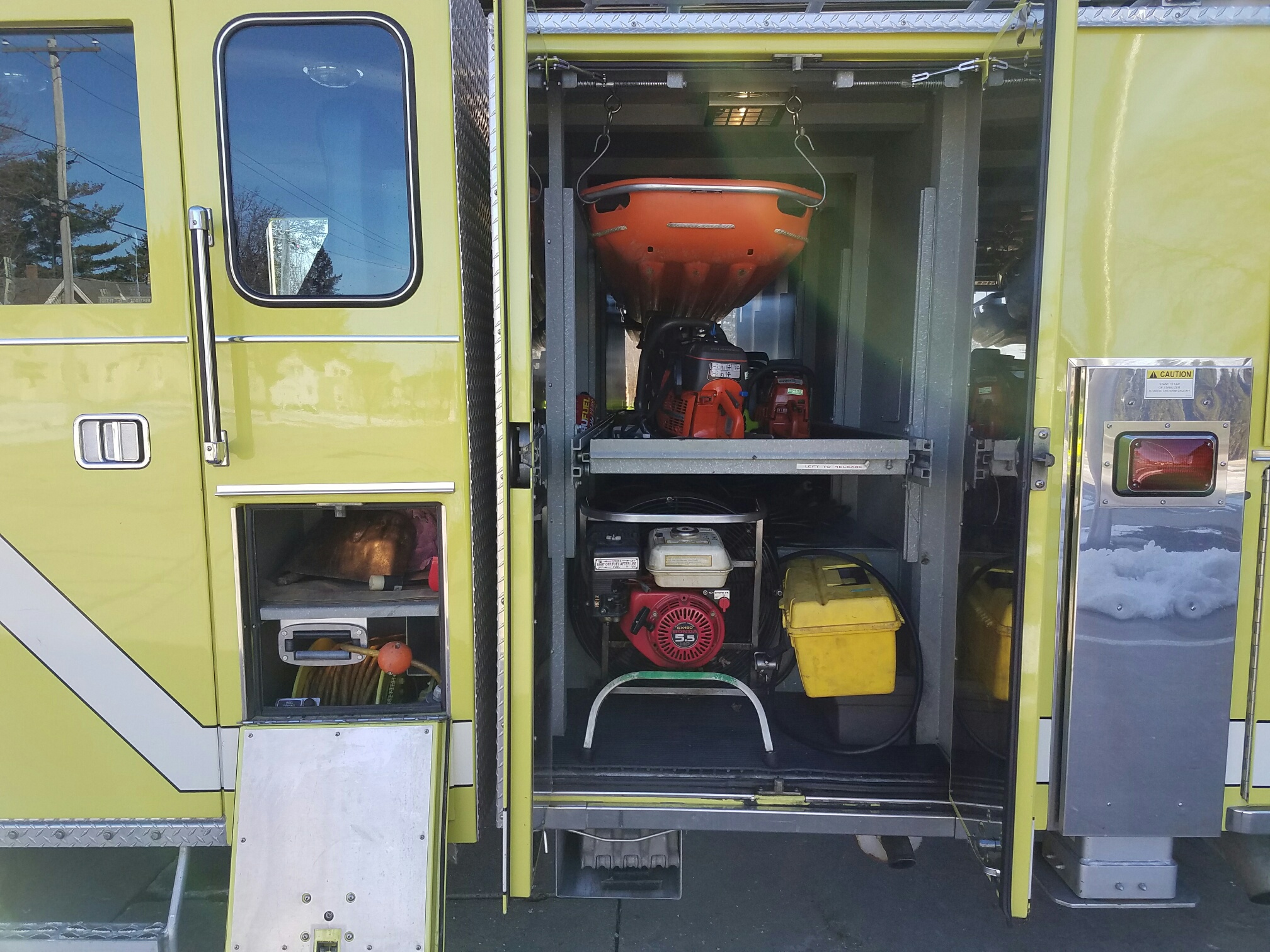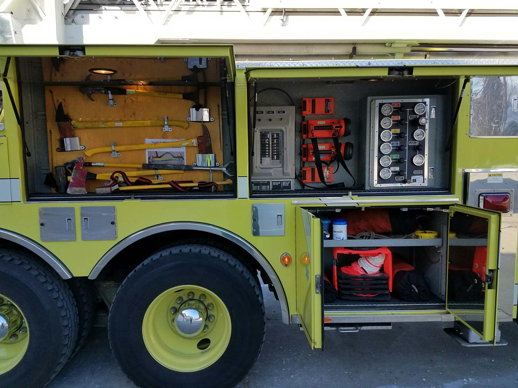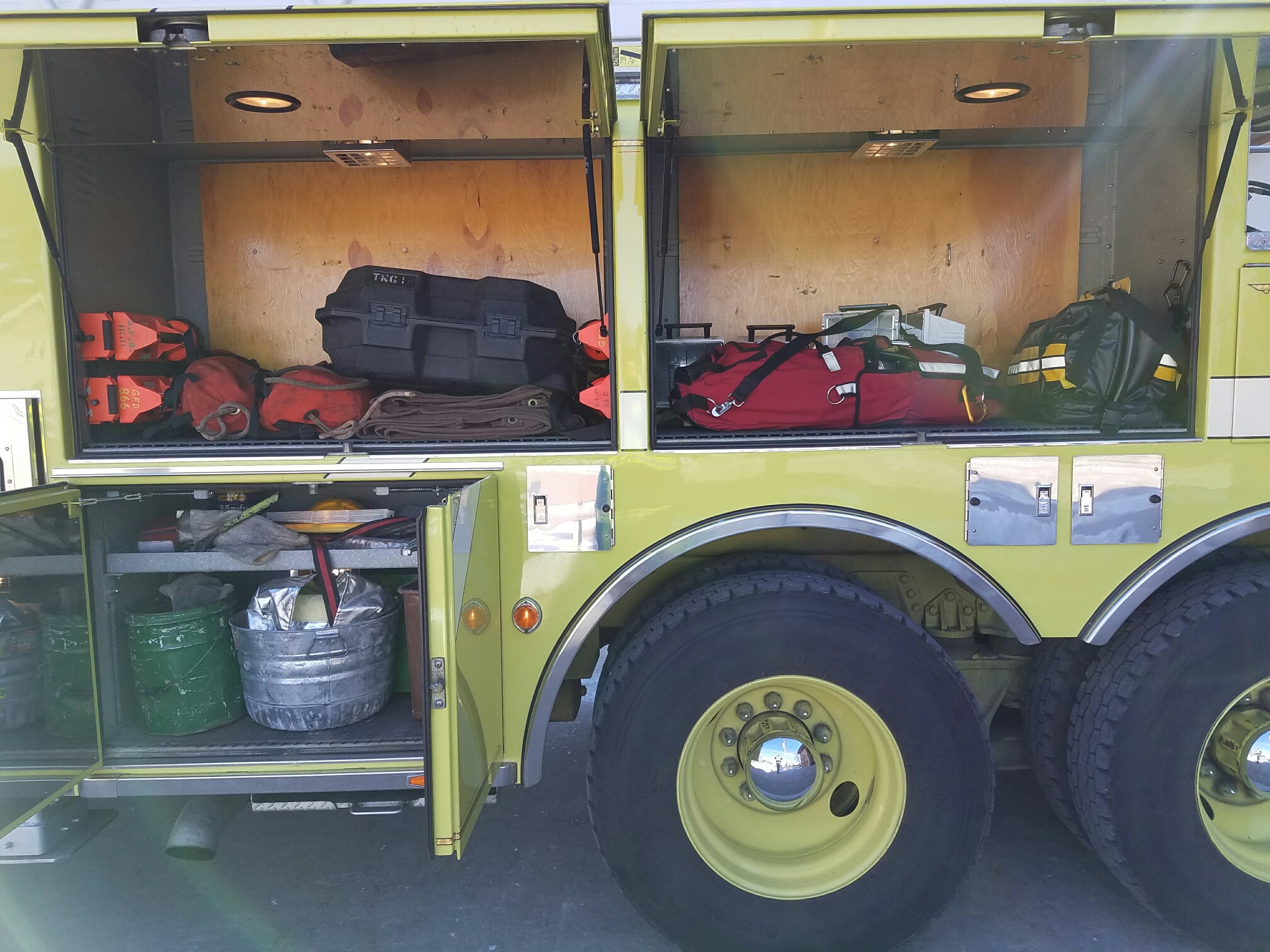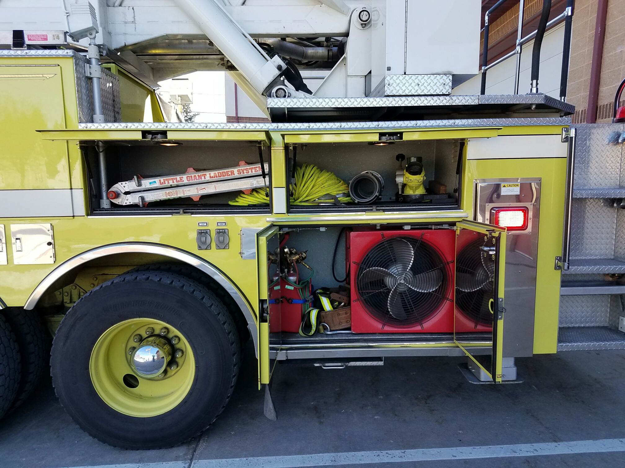 Capable of flowing 1000 GPM from the tip of the ladder at any position Rescue Tools Ladders Salvage Equipment The two mini light bars on the front facing cab roof will be removed and replaced with different mini light bars