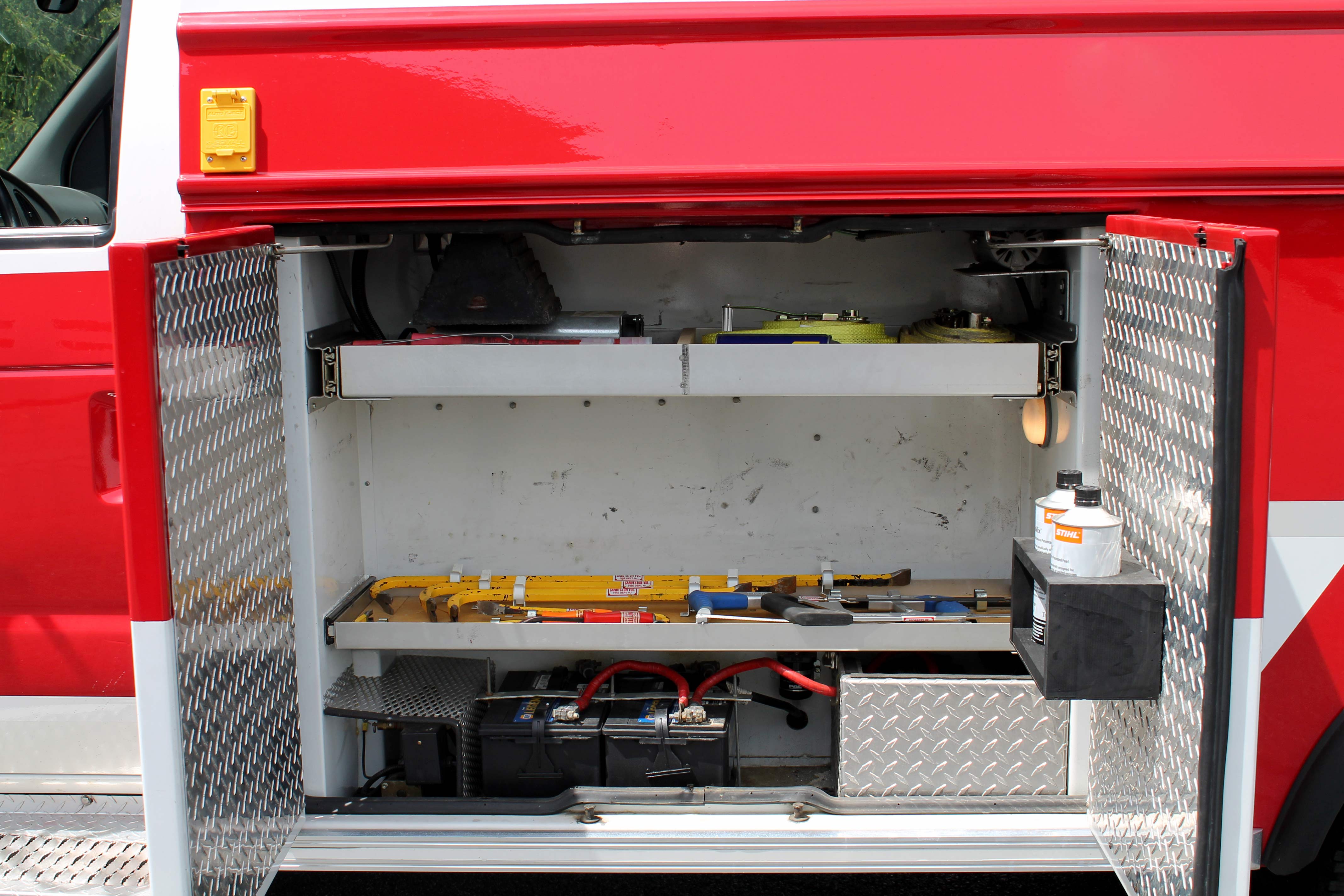 We had repurposed this ambulance to serve as a light rescue/fire police vehicle. Seating for 5 in the rear box area! Available now!