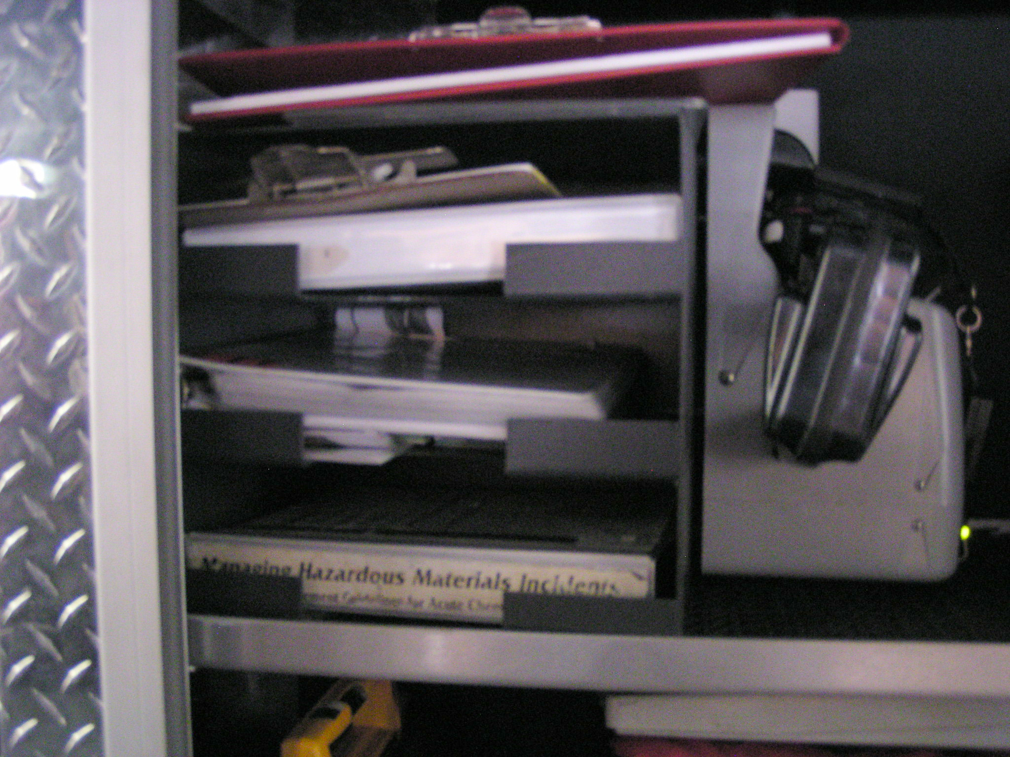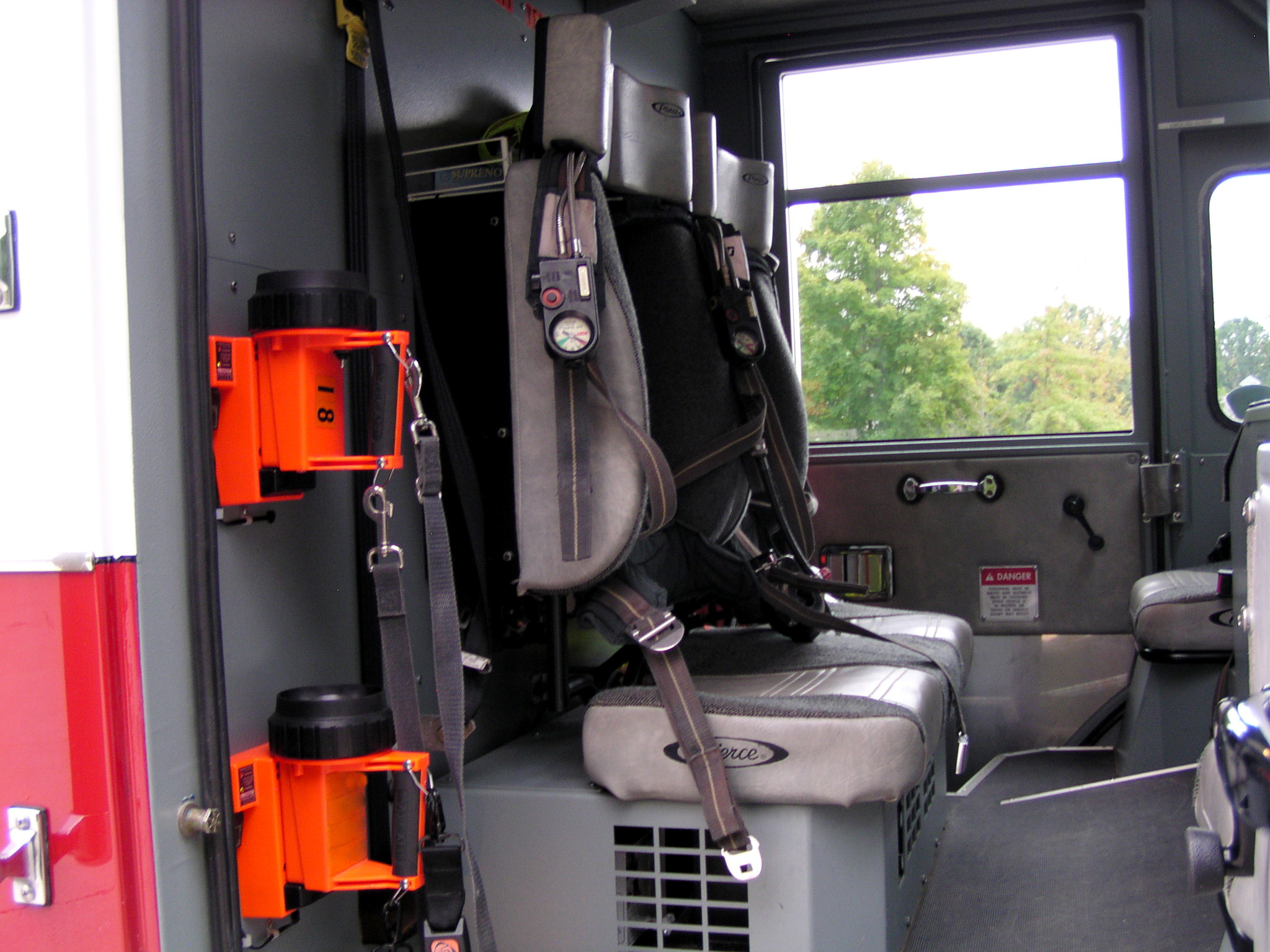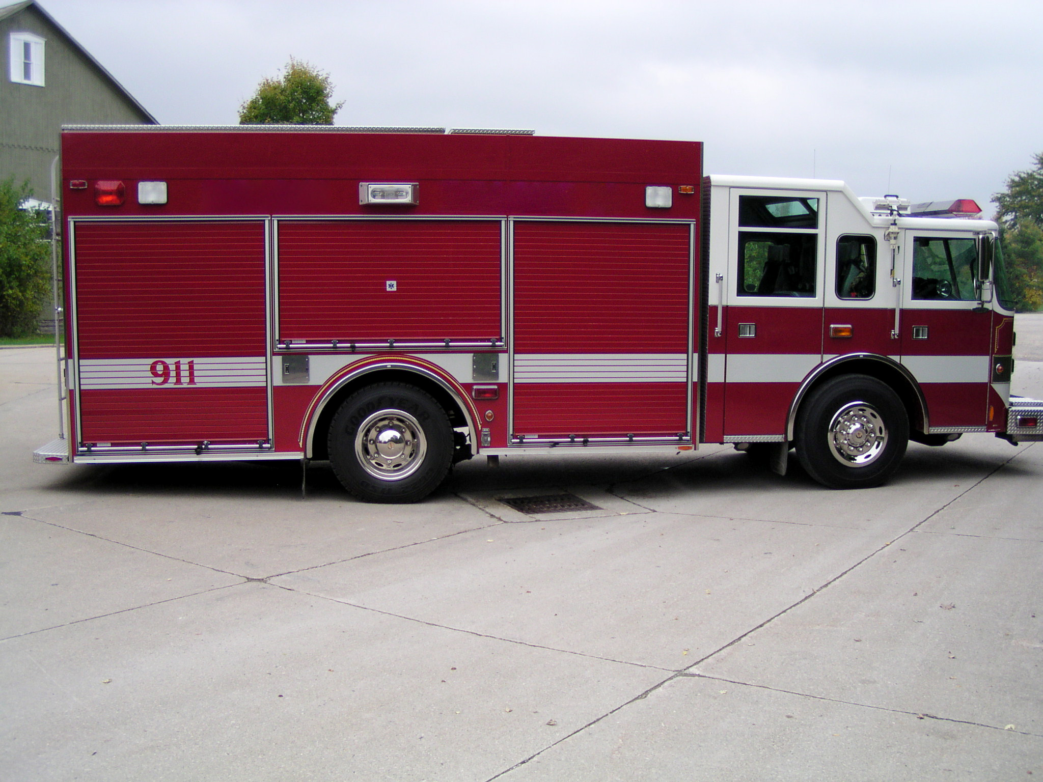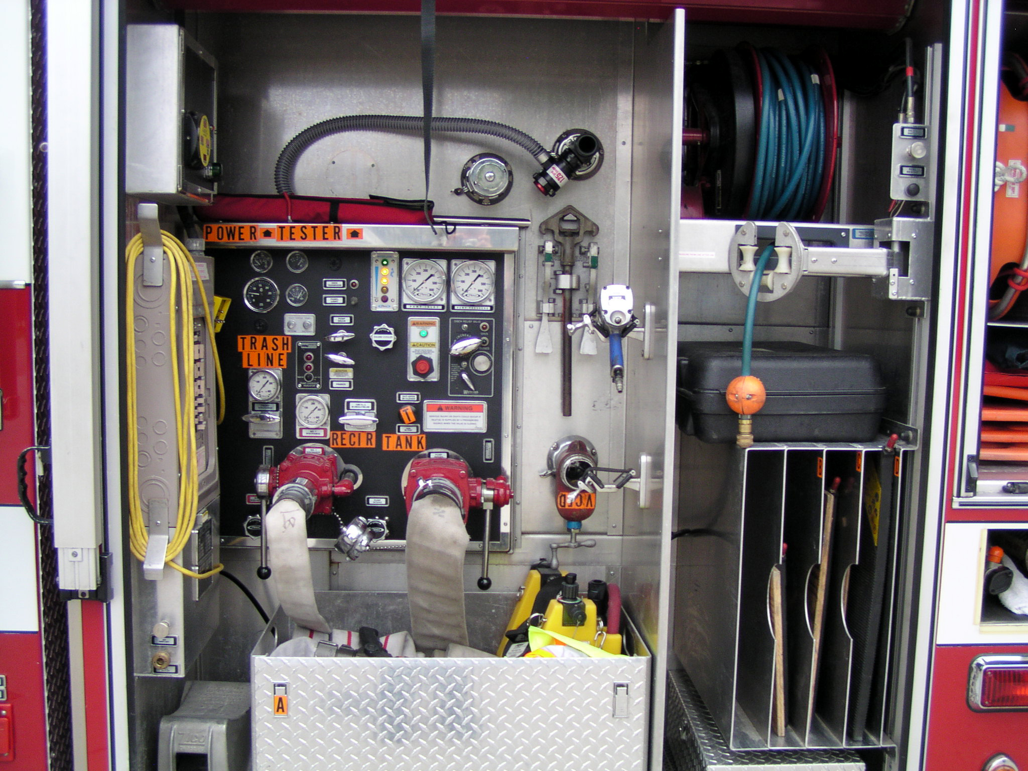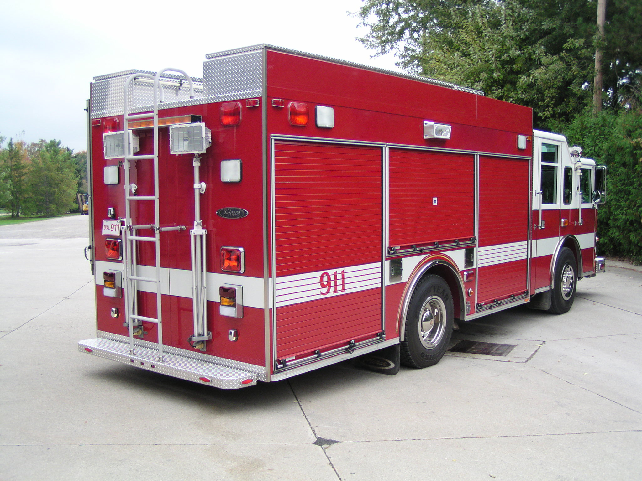 Top compartments Tool boards Shelves Slide-out tilt down trays Front hydraulic tool plumbing Side scene lights Air bags slots Air cylinder compartments (2) Tripod lights (4) Portable lights Holmatro Equipment Included:      Electric pump      Portable gasoline pump      (2) Rams      (1) Spreader      (1) Cutter
