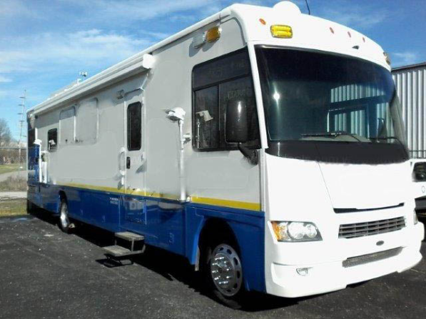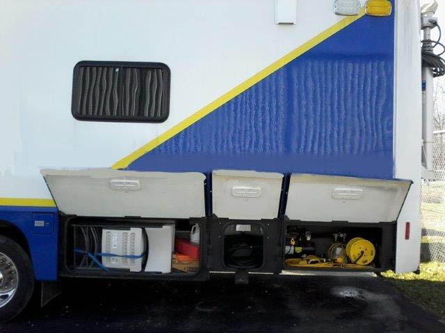 Mobile incident response-outreach vehicle New BATTERIES Comes with vehicle training and orientation DVDS Manuals on Aiphone Allied Telesis  Amerex fire extinguisher  Cobra CB radio  Braun Corp wheelchair lift Dell and Direct TV Everfocus digital video recorder Girard awning systems Goodyear Tires Hetal Werke tables HP printer Incinolet Toilet Jensen GPS navigation Jensen radio moniter Kidde smoke alarm KVH Industries TracVision Kwikee Electric steps Liebert 2U power output distribution Linksys Wireless G Access point Little Giant Ladder Lorex Dome Surveillance Camera Marley Space heaters Maxair II vent covers Middle Atlantic Prod custom rack shelves NEC LCD monitor NOAA weather radio Norcold refrigerators Panasonic Telephone System Peavy Compact Audio Mixer Peerless Flat Screen wall mount Pelco Camera remote Pentaplex DVR Pioneer Qmark Fan forced wall heater Rolls mini stereo mixer RV products wall thermostat Samson Audio power amps Sanyo AirCam monitoring system Security System Sennheiser RS130 wireless headset Sentry Safe Seon Wedge surveillance camera Shure AC/DC power supply Switch Shure wireless mic system Smartboard Startech video splitter Stebco folding cart Streamlight rechargeable litbox/firebox Telesteps Combi ladder Telular PhoneCell SX5T CDMA2000 1X Fixed Wireless terminal Thomas air compressor Toshiba DVR Trendnet Firewall router