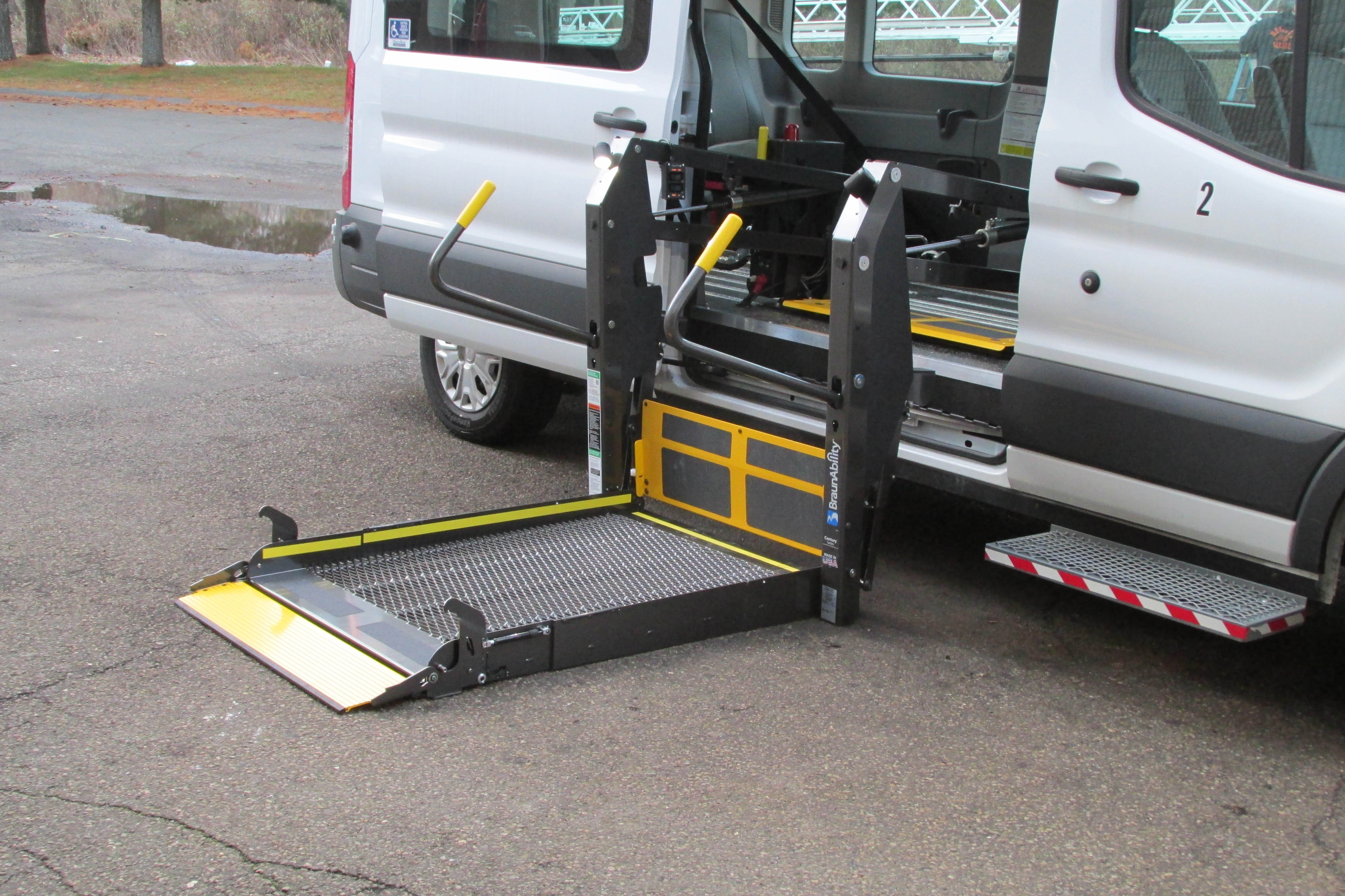 2 Rear seats are moveable on tracks AMF Braun Smart Floor wheelchair hold-down system Braun Ability wheelchair liftÂ