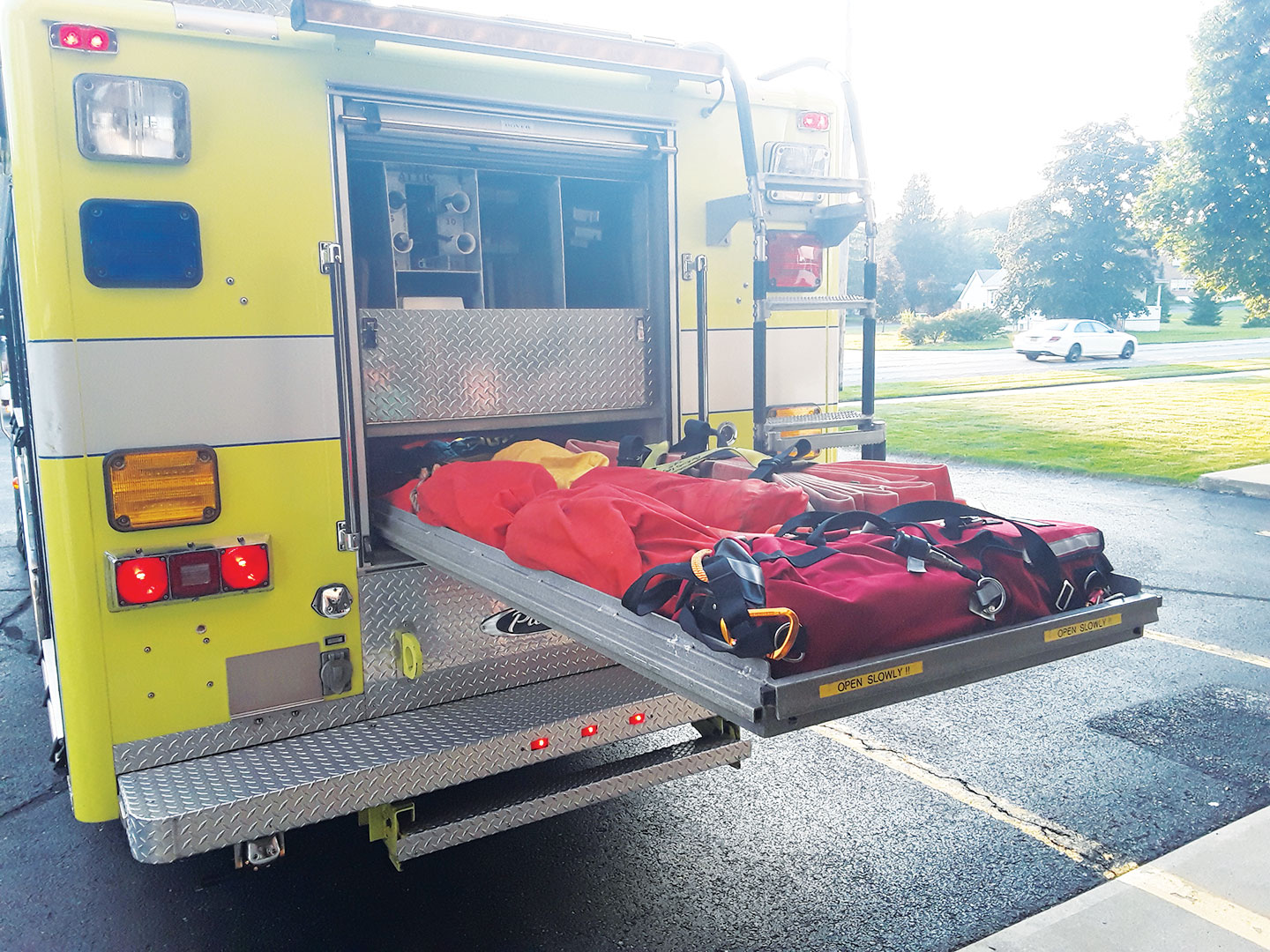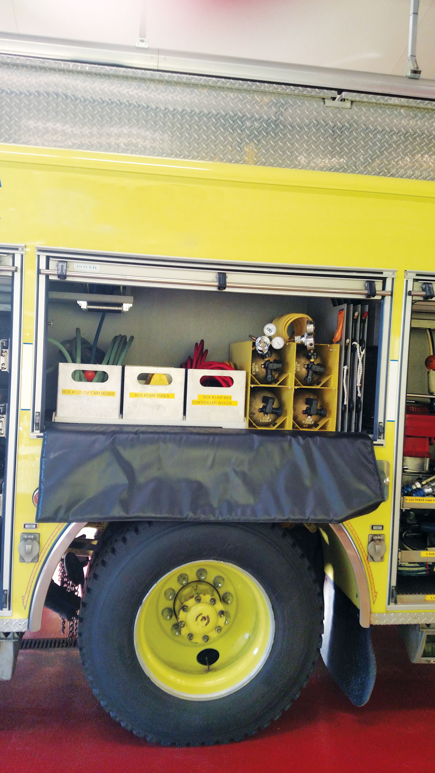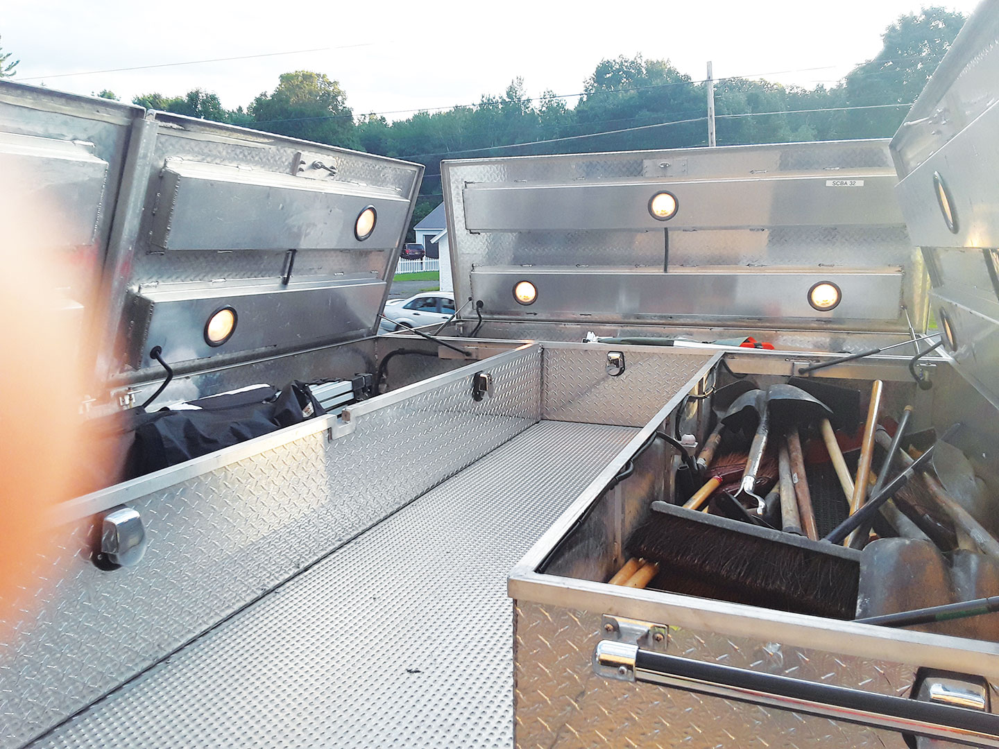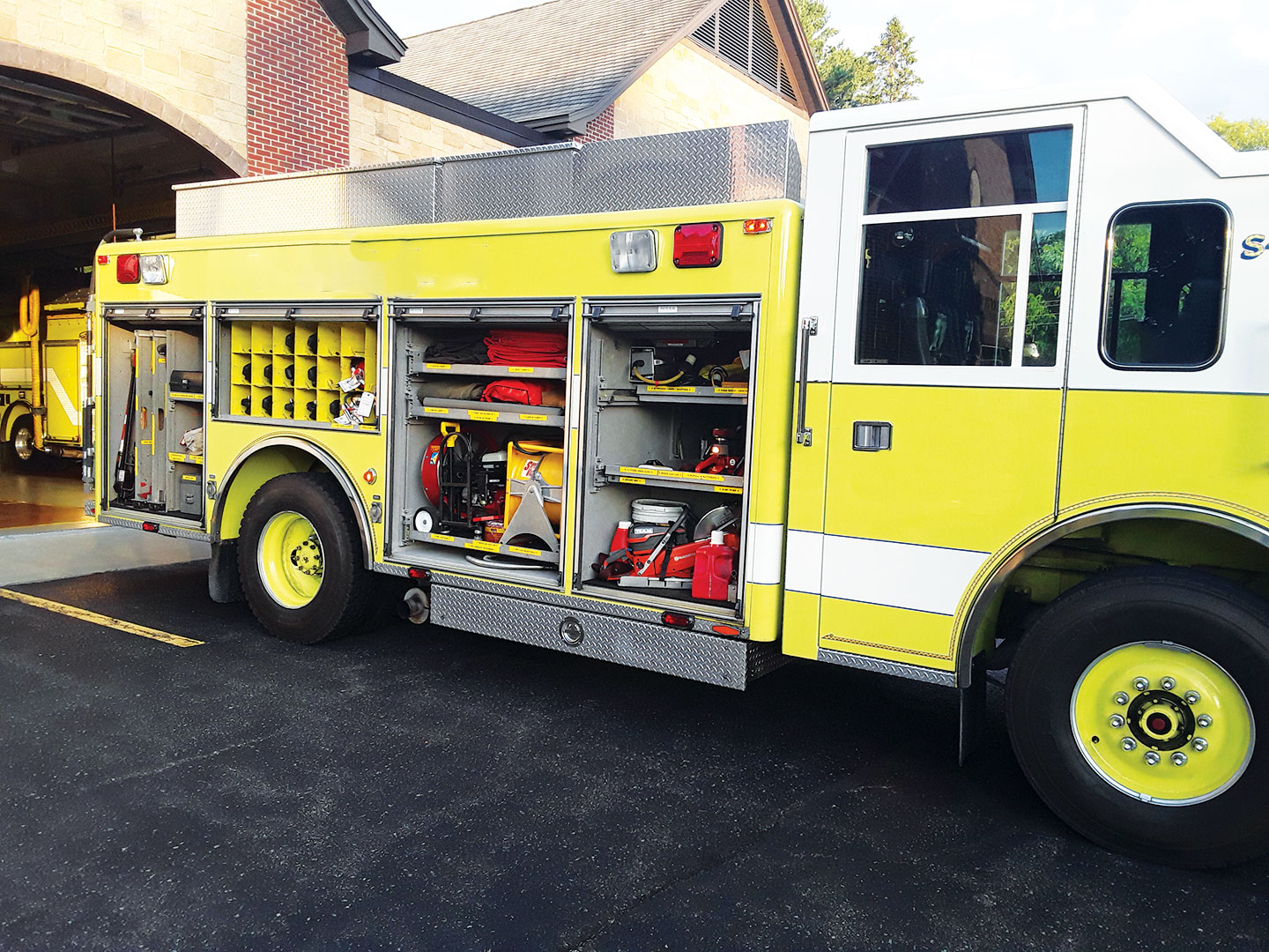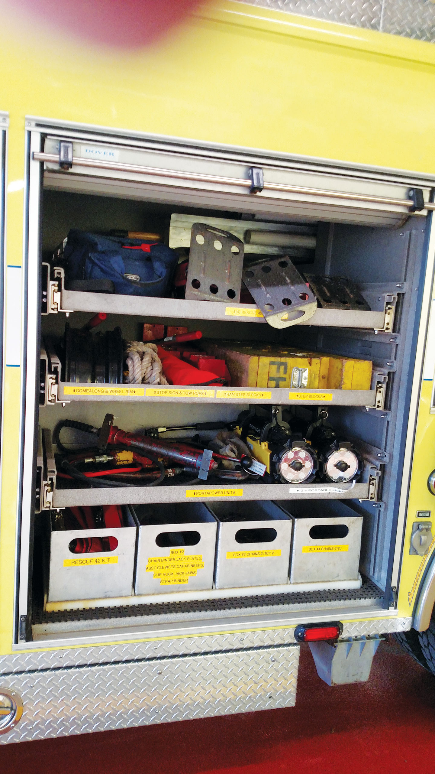 Tires: 2014- Good Condition 45 K Generator Winch w/ Wired Controller Light Tower Wooden Back Board Ladders: 3 Section 28’ Duo Safety and 10’ Folding 9 (Attic) Portable Lights (2) Tripod Pike Poles: 6’, 8’, 10’, 12’ (2) Junction boxes pre-connected to 200’ electrical cord reels (2) Hannay Reels w/ 100’ Hurst High-Pressure Hose and female quick connects (1) set of road Triangles (6) Aluminum tool boxes w/ cut out handles