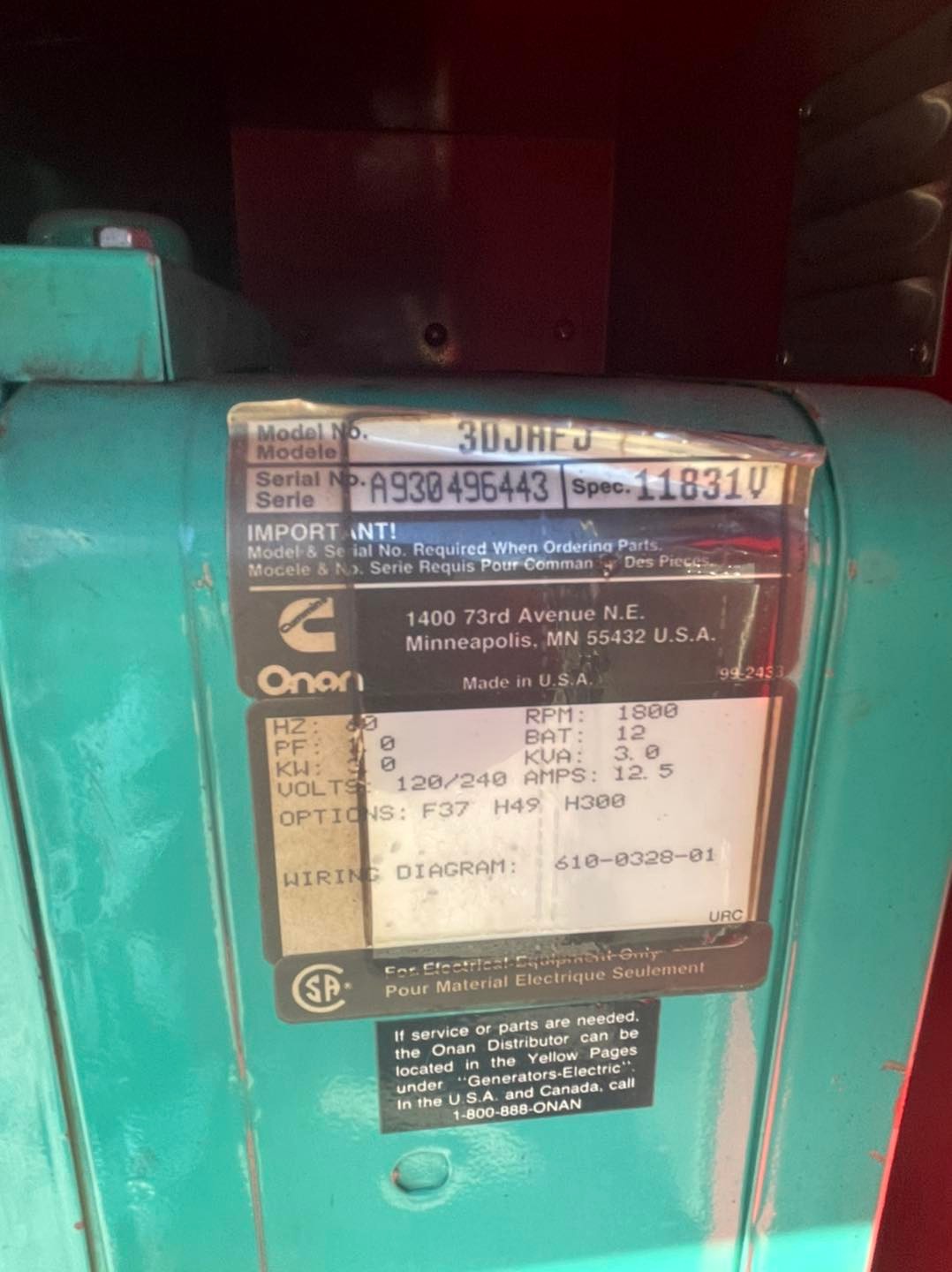 • Onan 5KW Diesel Generator