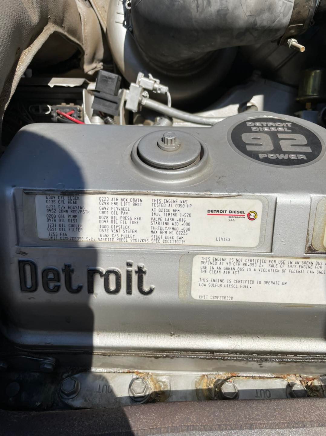 • Detroit 6V92TA 350 HP Diesel Engine