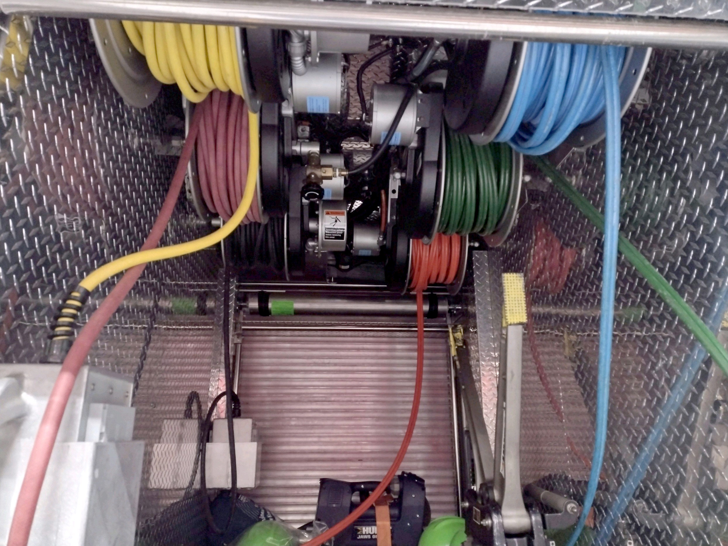 Oil Dry Dispenser Air line reel in first compartment.