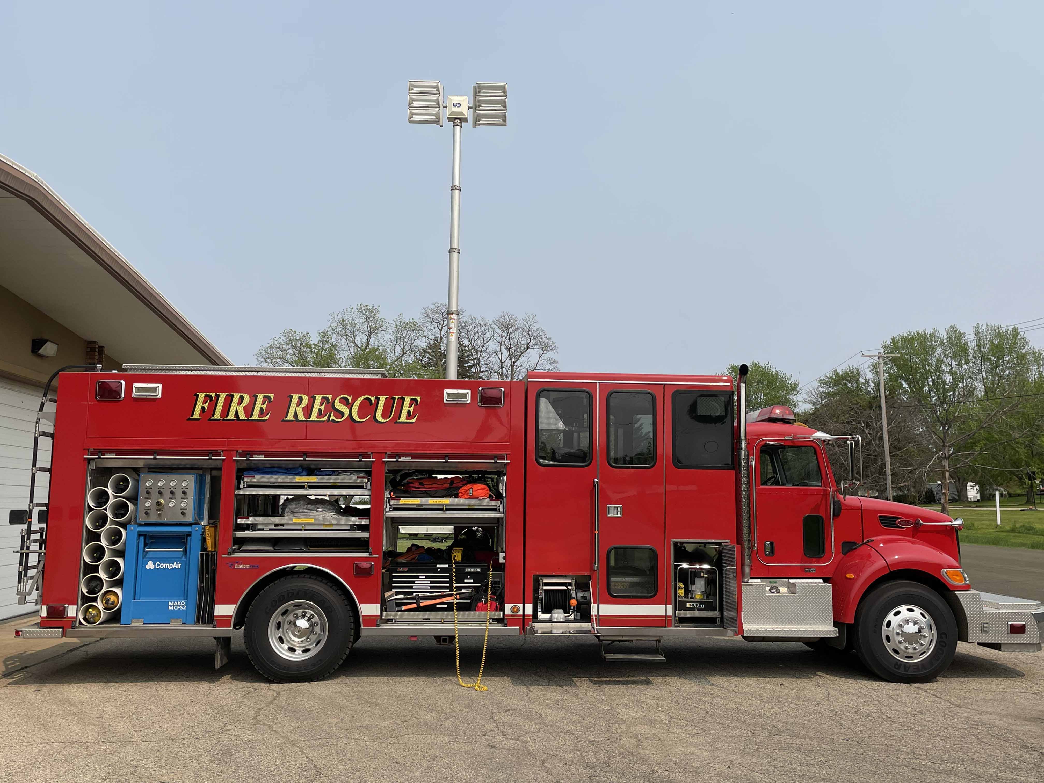 The light tower on this vehicle will provide excellent scene lighting on your response. Whether lighting a wreck scene, or making sure your fire fighters have the light needed to prepare for work, this truck can provide that.