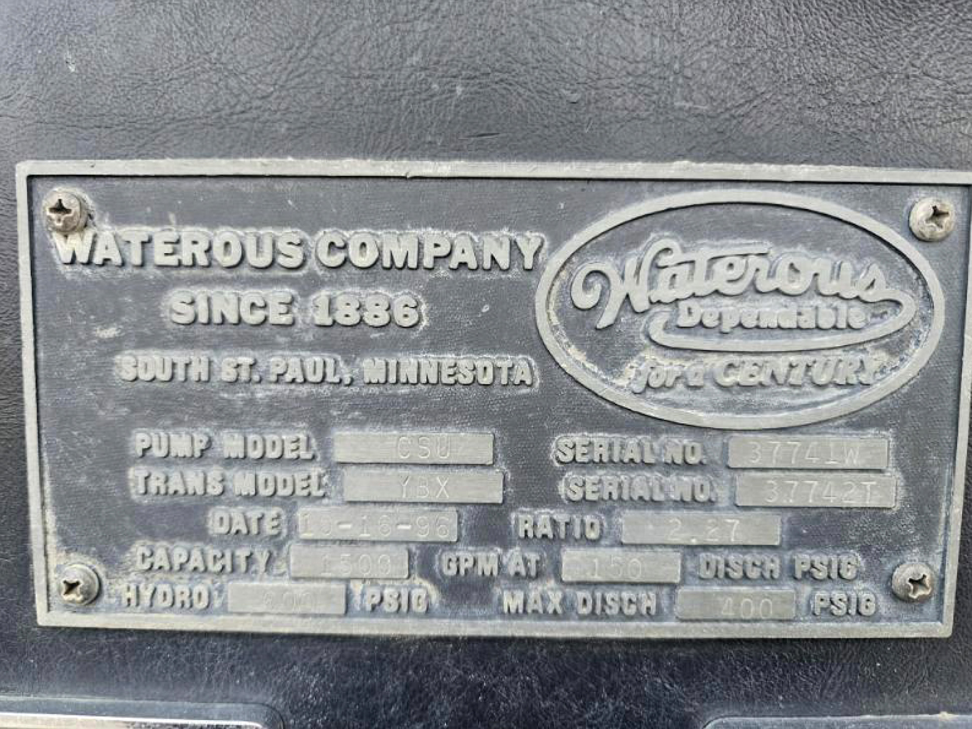 Waterous 1500 GPM Pump, 750 Gallon Tank, Detroit Diesel