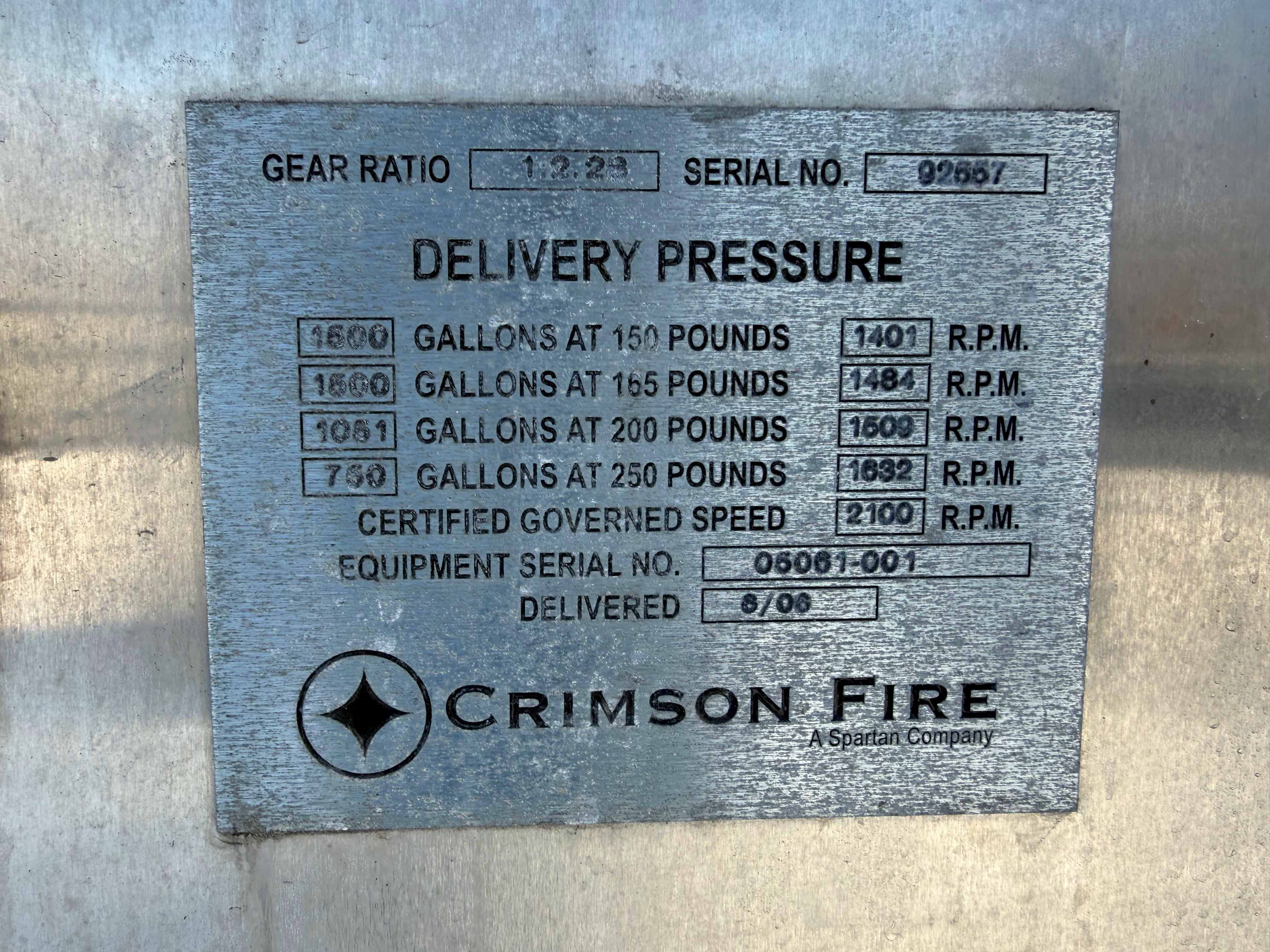 Thank you for your interest in the 2006 Spartan Crimson Rescue Pumper! Fill out the form below and we'll immediately start the process to get you more information.