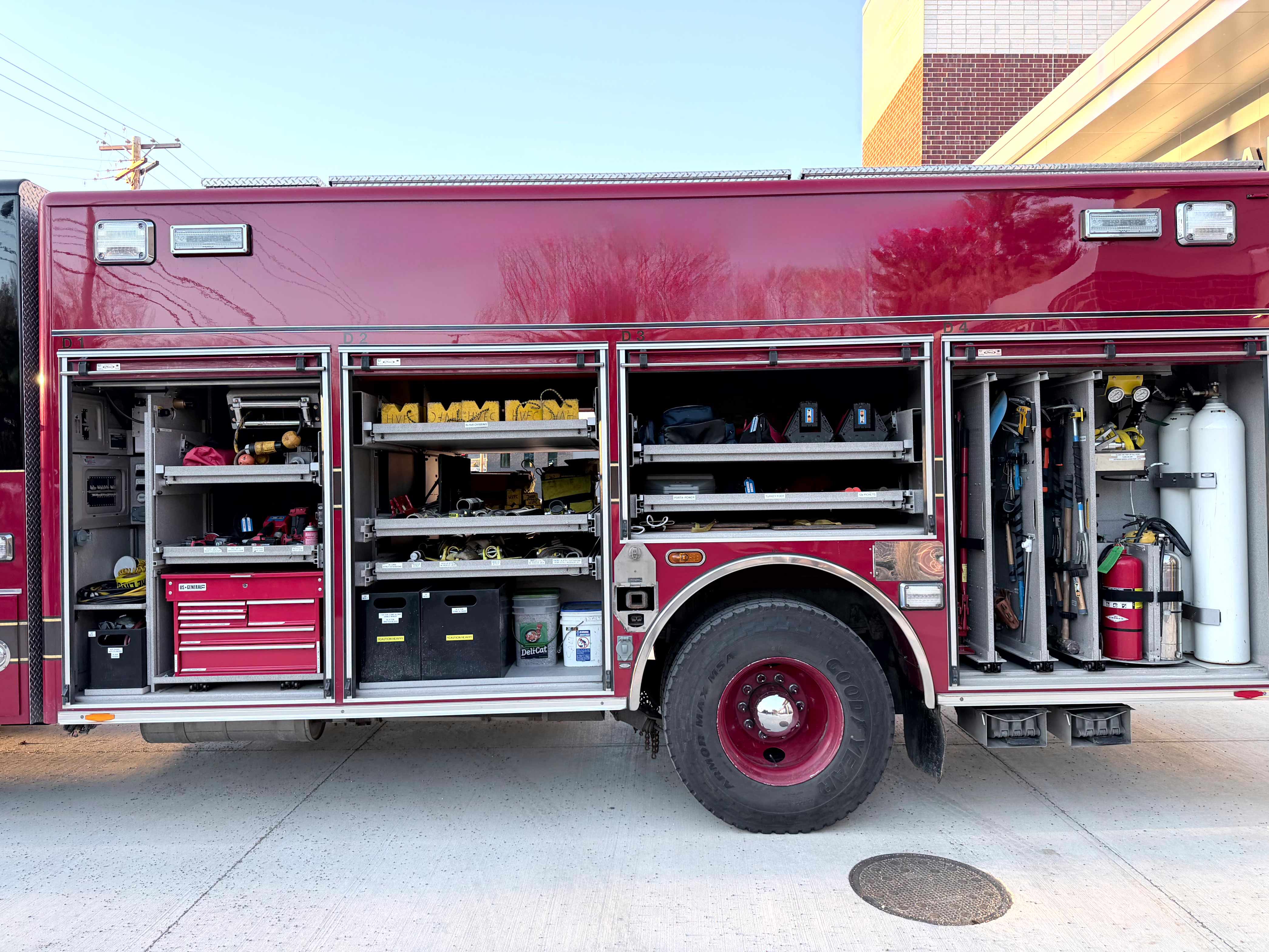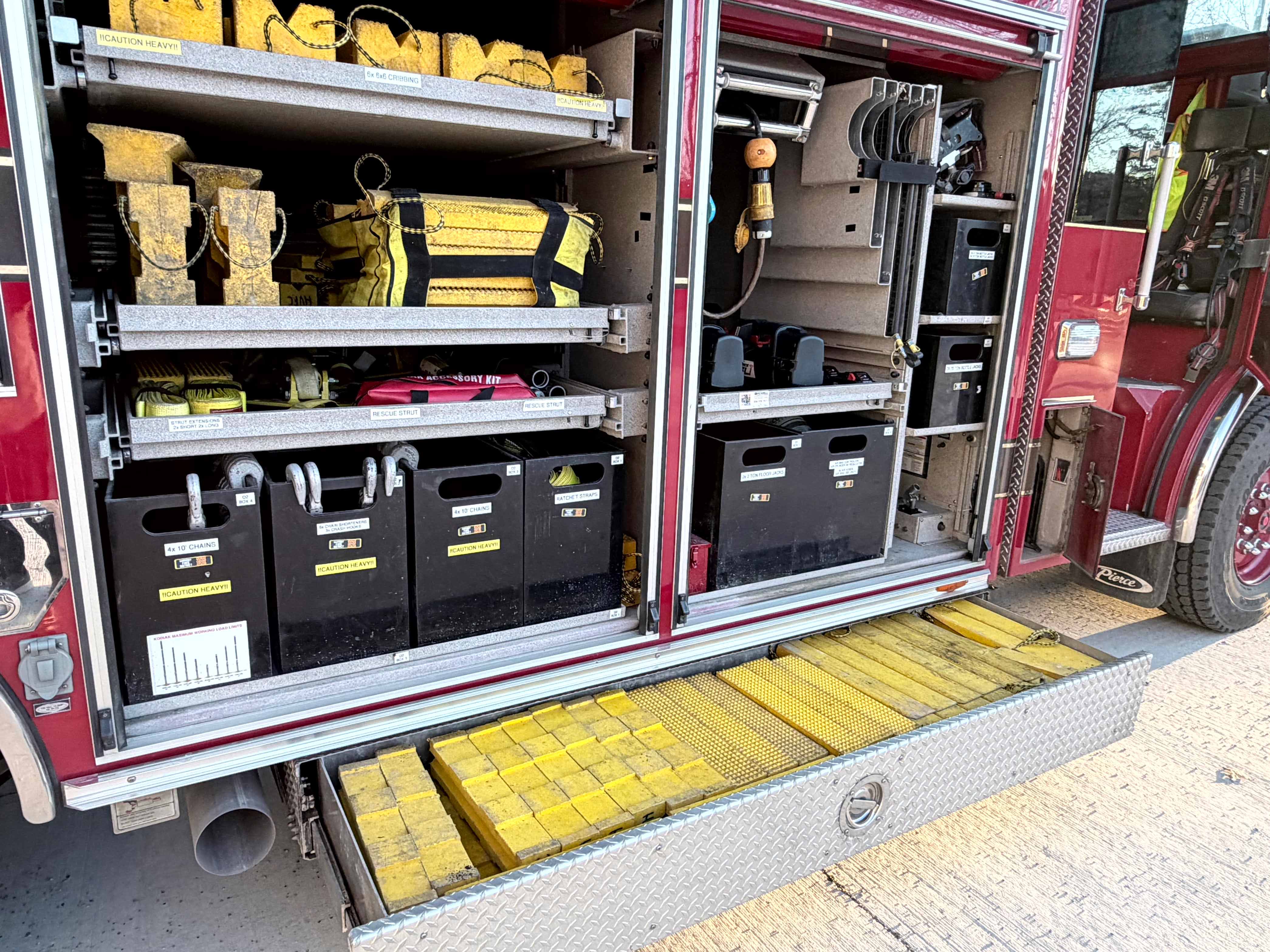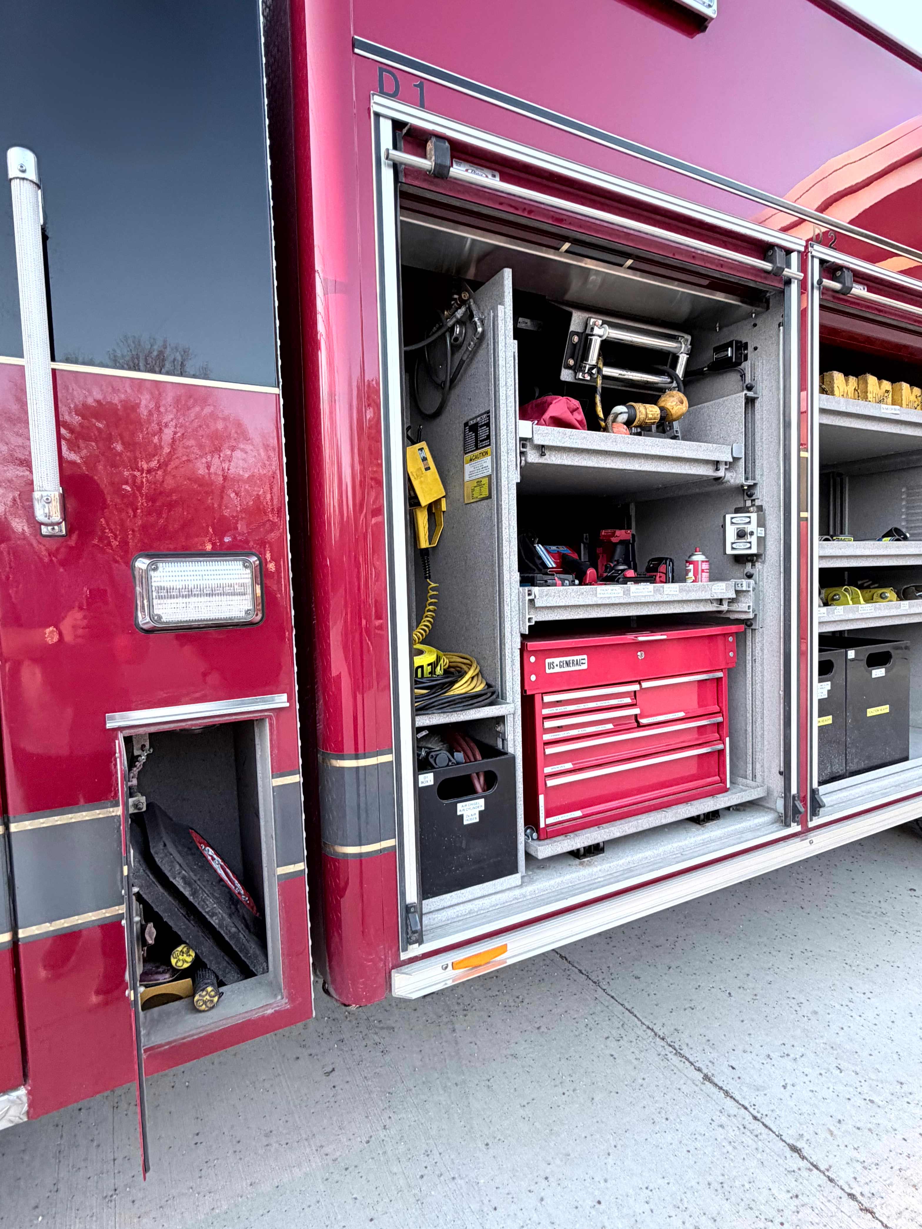 The light tower on this vehicle will provide excellent scene lighting on your response. Whether lighting a wreck scene, or making sure your fire fighters have the light needed to prepare for work, this truck can provide that.