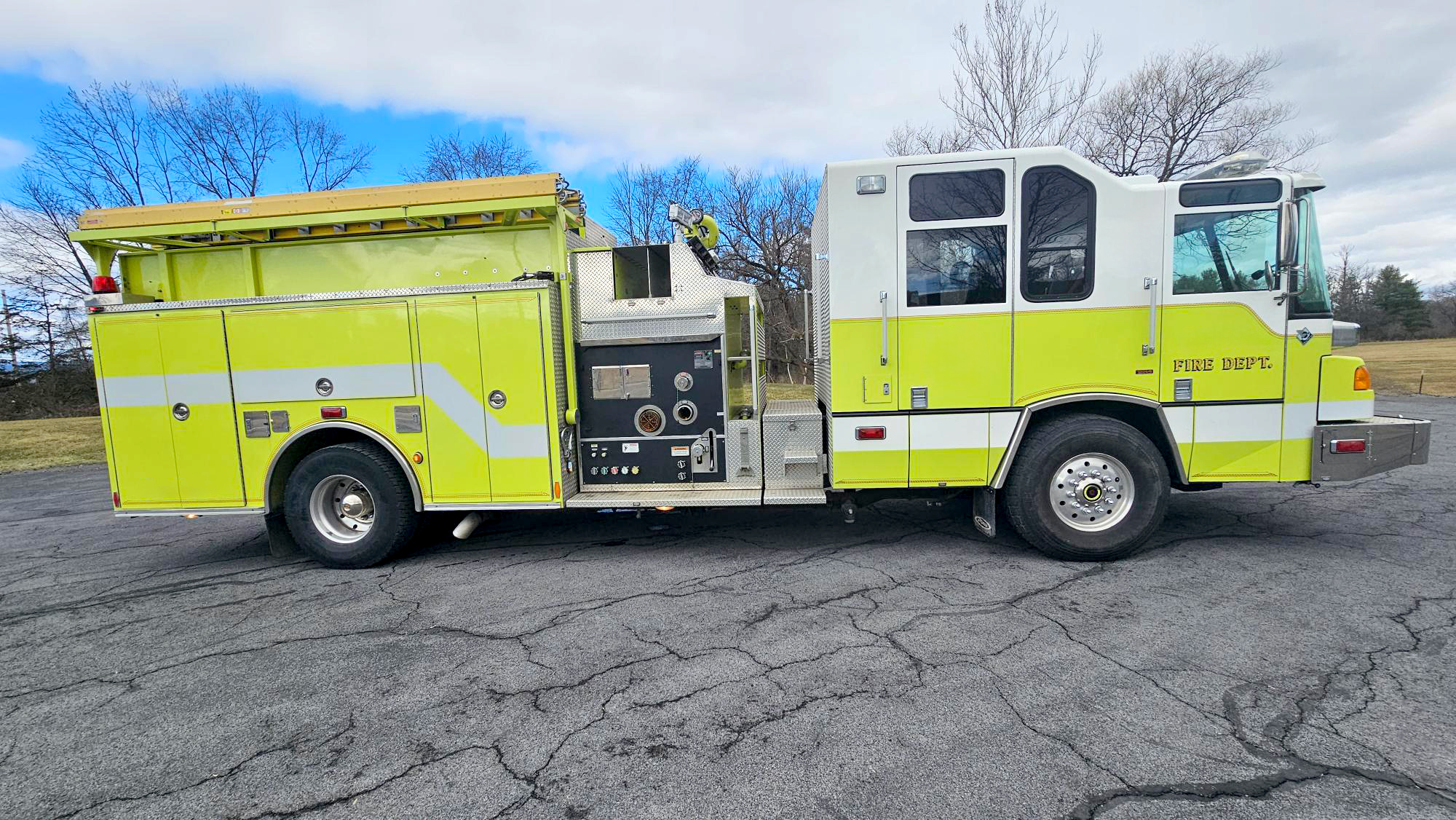 • This truck has the pump to move water wherever you need it! The gallons per minute this used fire truck will flow will help get your fire flow capacity needed to help your Fire Department's ISO rating!