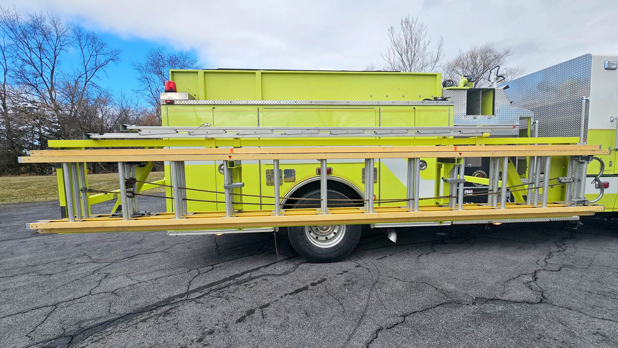 • Ground Ladders: 24' ext, 14' roof, 10' folding