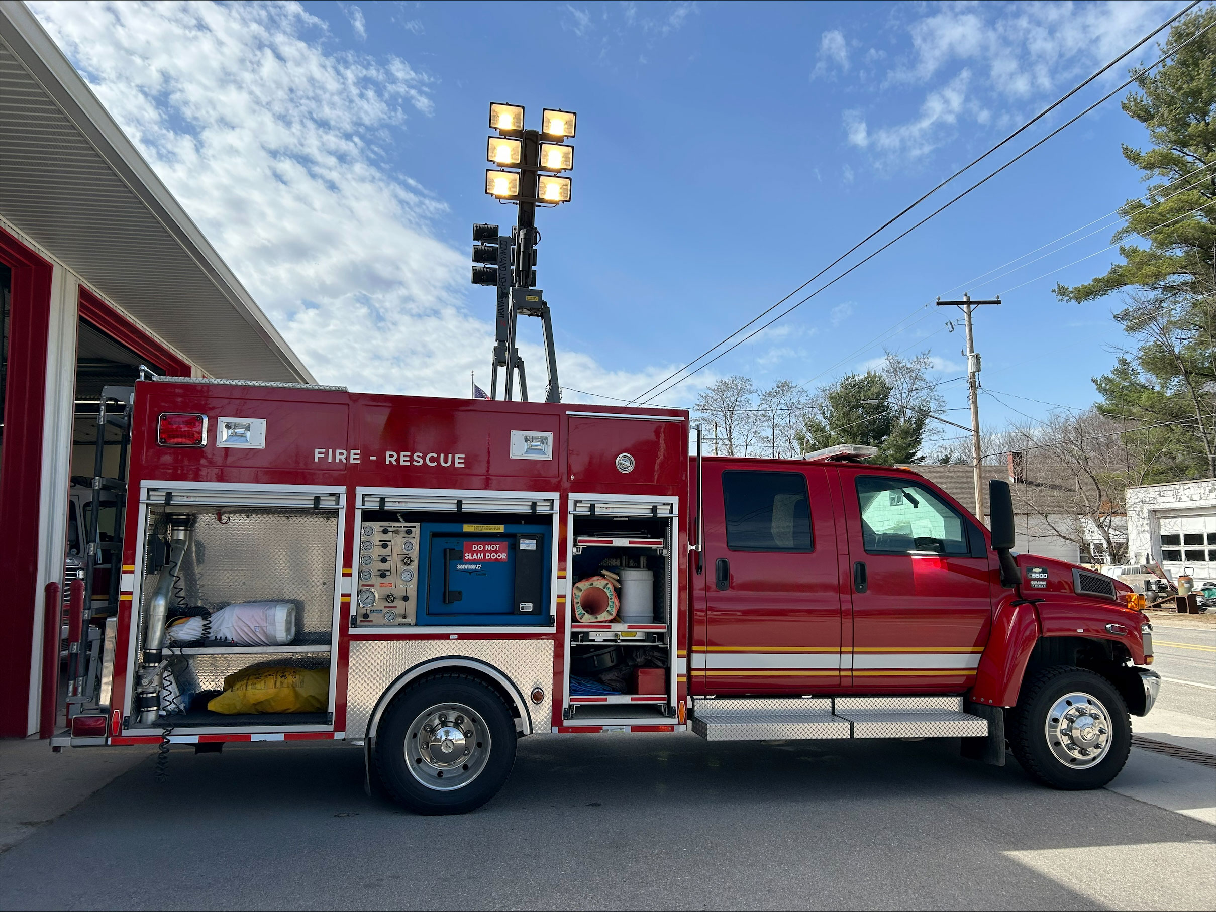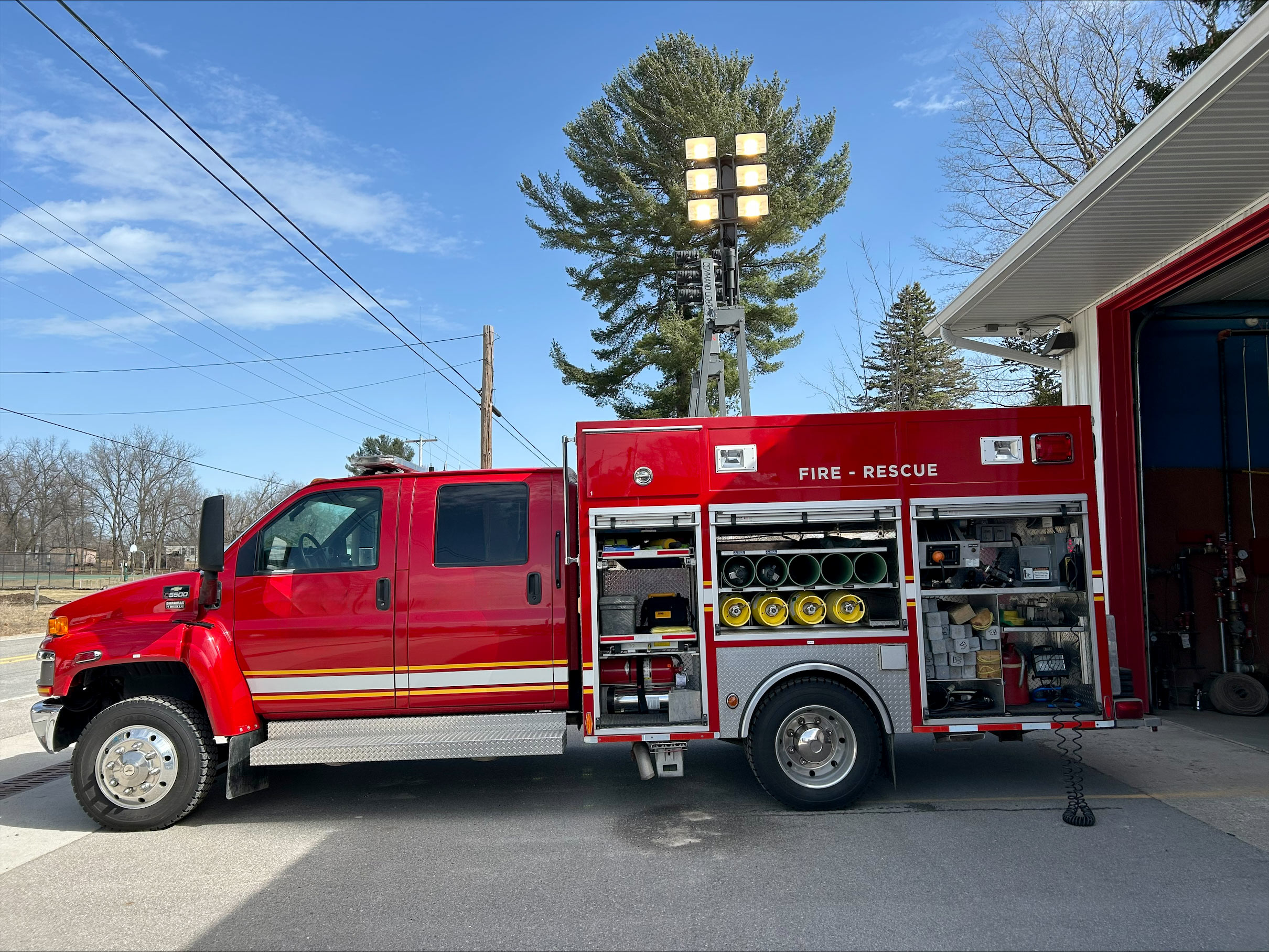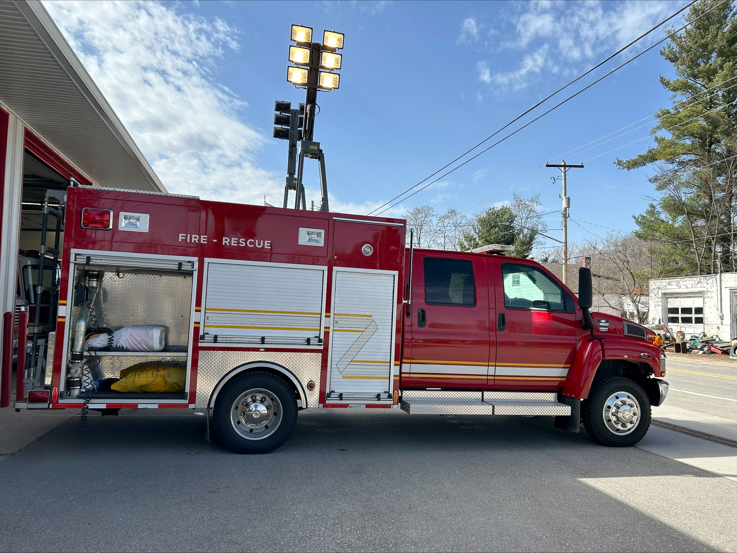 • The light tower on this vehicle will provide excellent scene lighting on your response. Whether lighting a wreck scene, or making sure your fire fighters have the light needed to prepare for work, this truck can provide that.